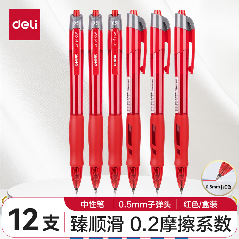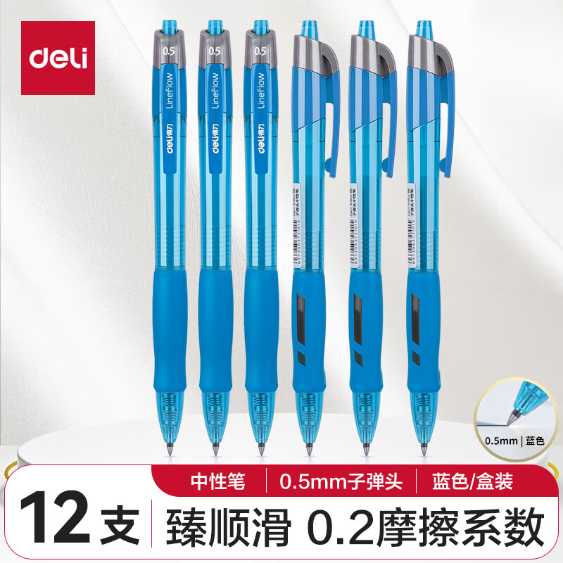 商品名稱:得力S08 臻順滑中性筆 簽字筆 0.5mm子彈頭按動筆水筆 辦公用品 12支/盒【順滑之星】