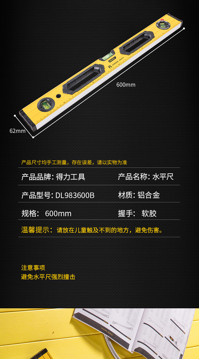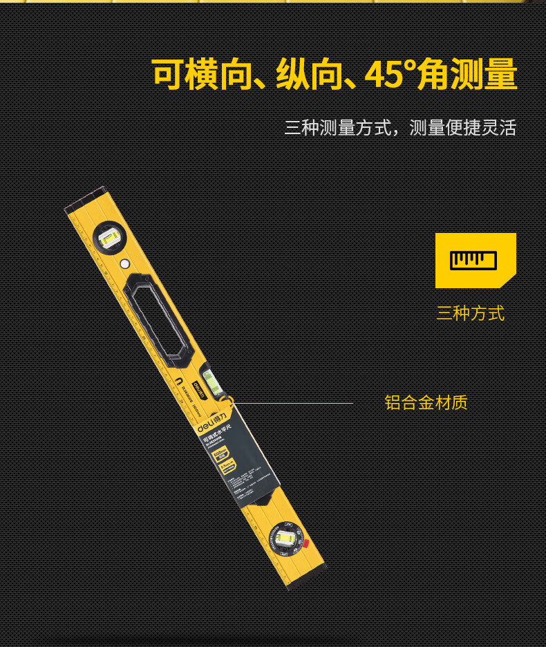 商品名稱:得力DL983600B 可調(diào)式水平尺 高強(qiáng)磁多角度精度鋁合金水平測(cè)量尺防摔平衡儀600mm