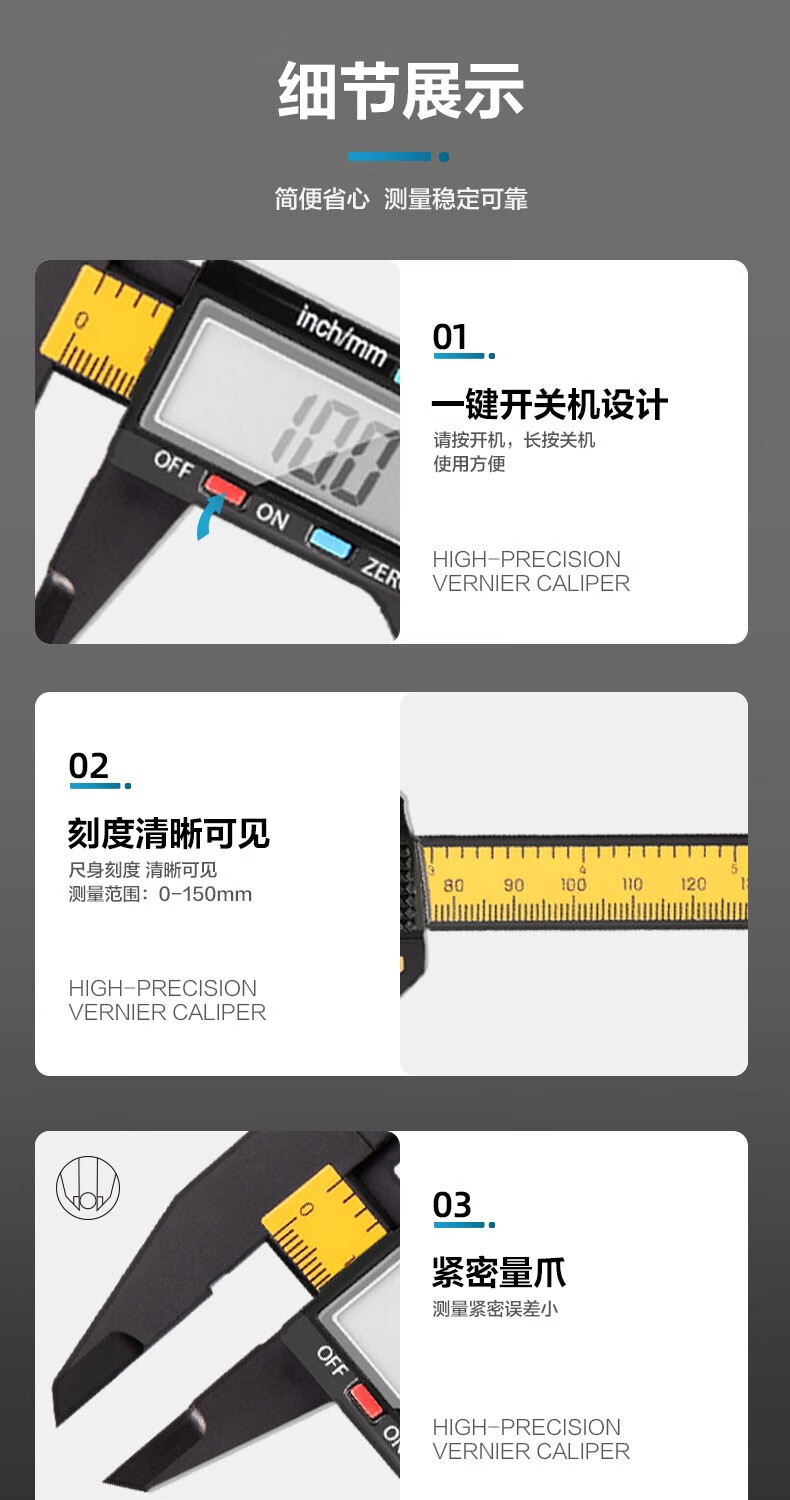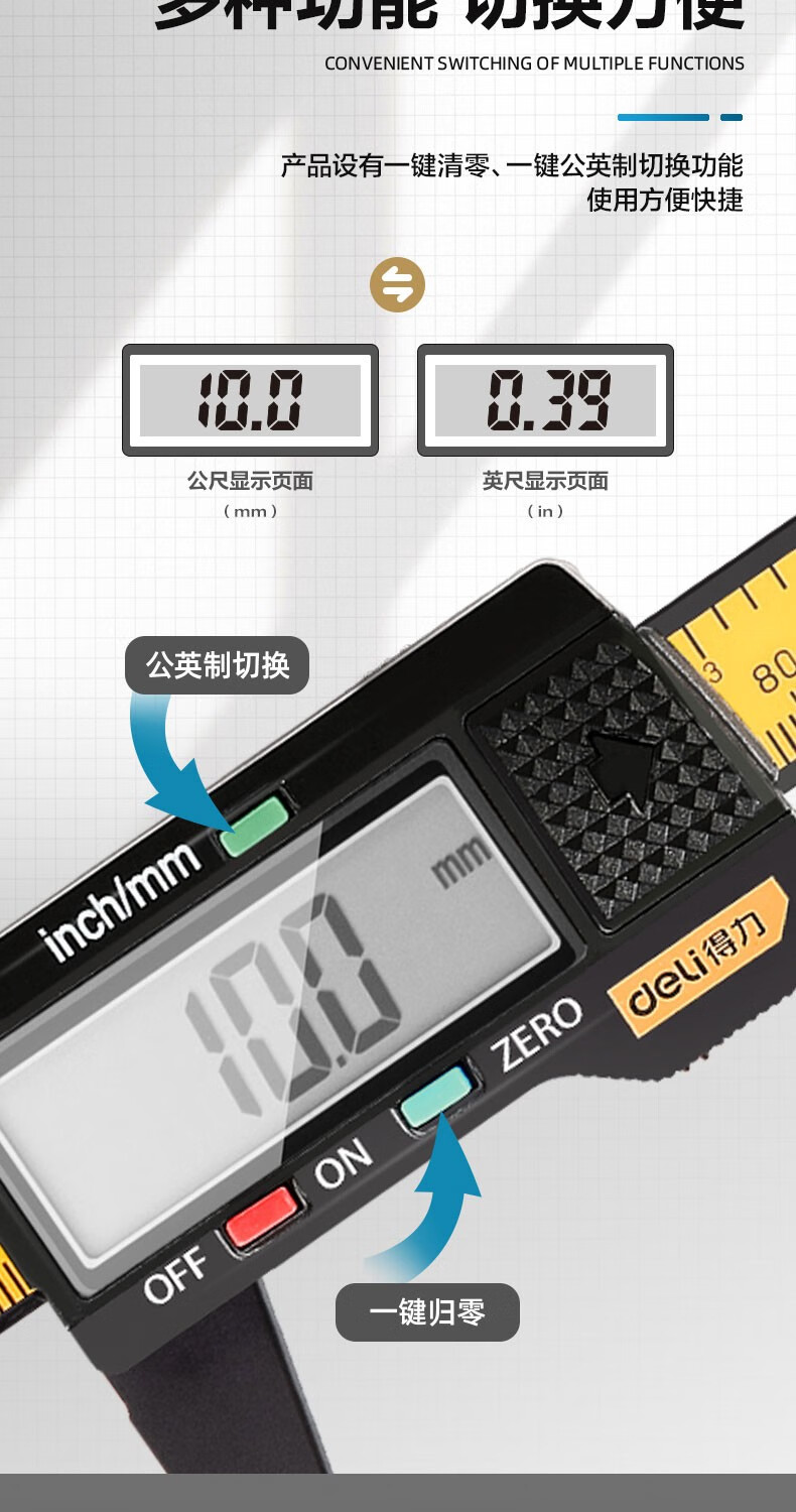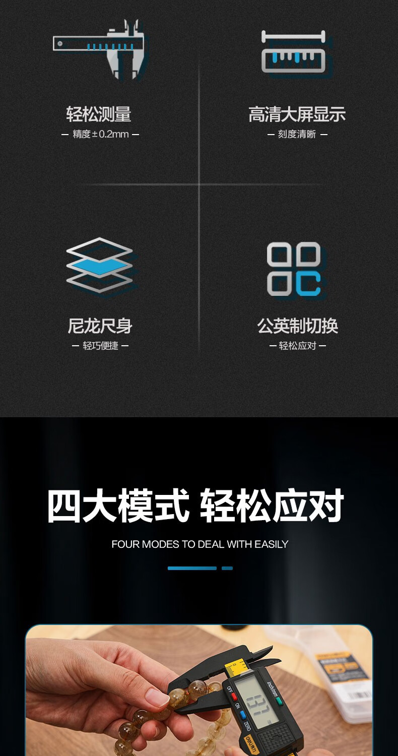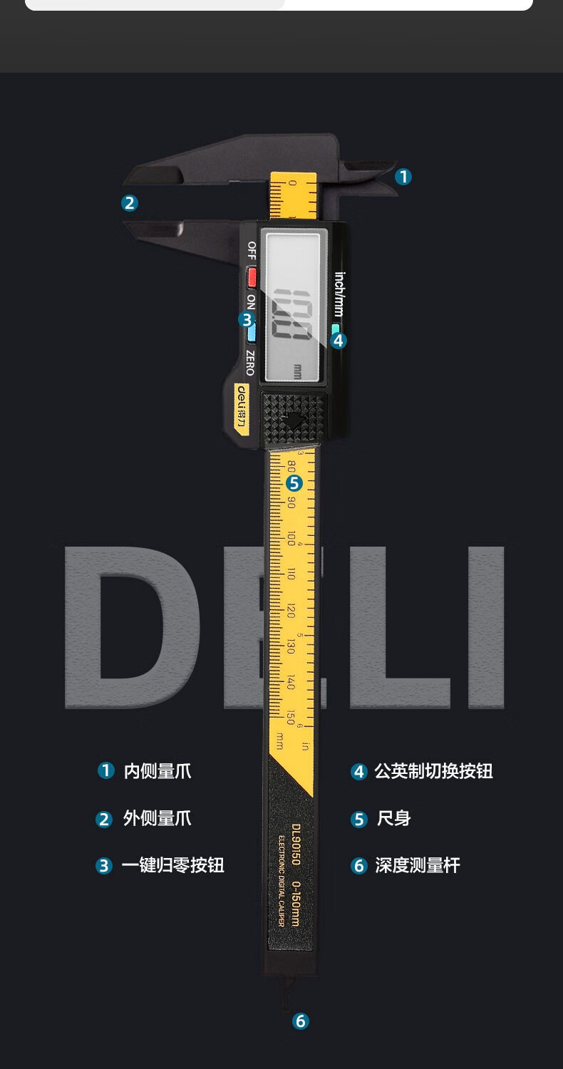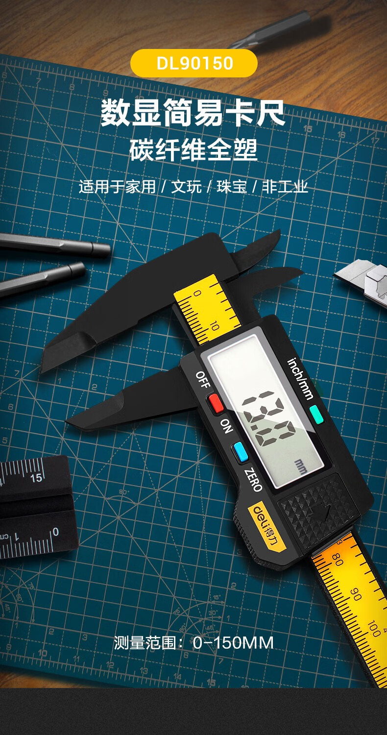 商品名稱:得力DL90150 數顯卡尺 碳纖維電子游標卡尺高精度內外徑家用文玩古玩珠寶測量