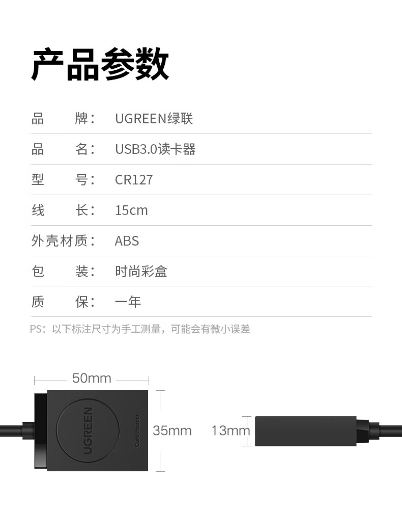 商品名稱:綠聯(lián)CR127 USB3.0高速讀卡器 SD/TF二合一多功能讀卡器 適用手機(jī)單反相機(jī)行車記錄儀監(jiān)控存儲(chǔ)內(nèi)存卡讀卡器