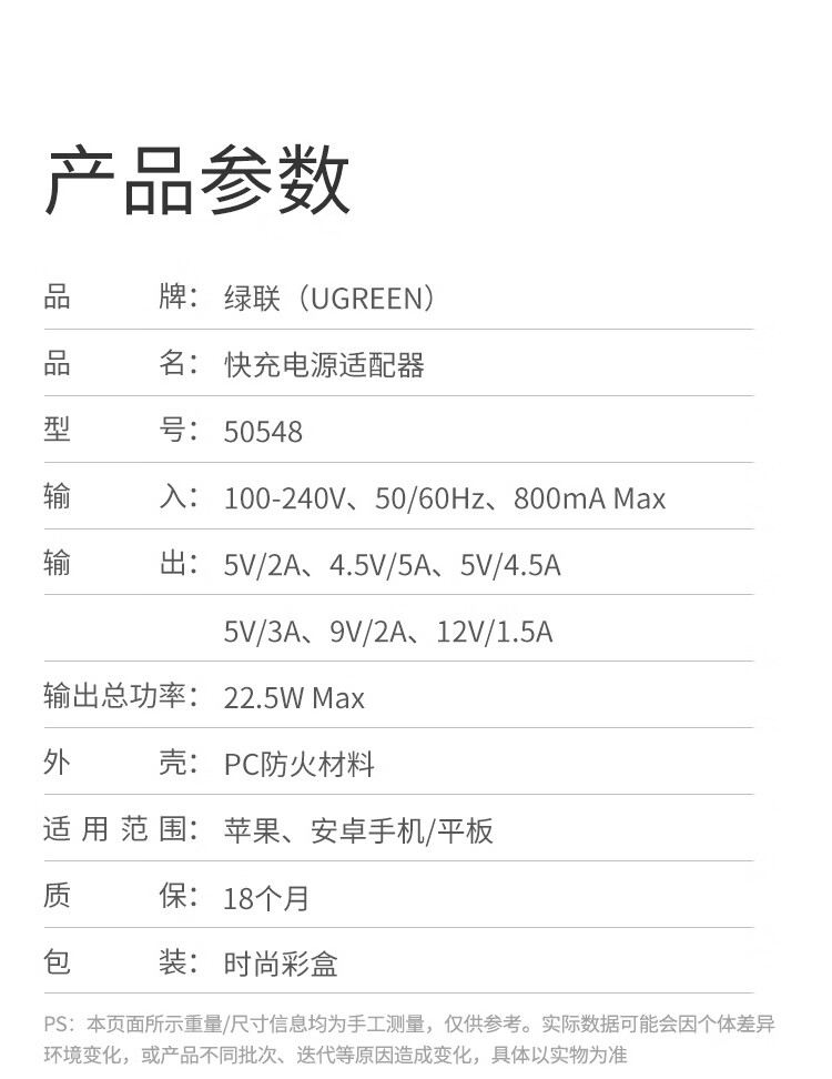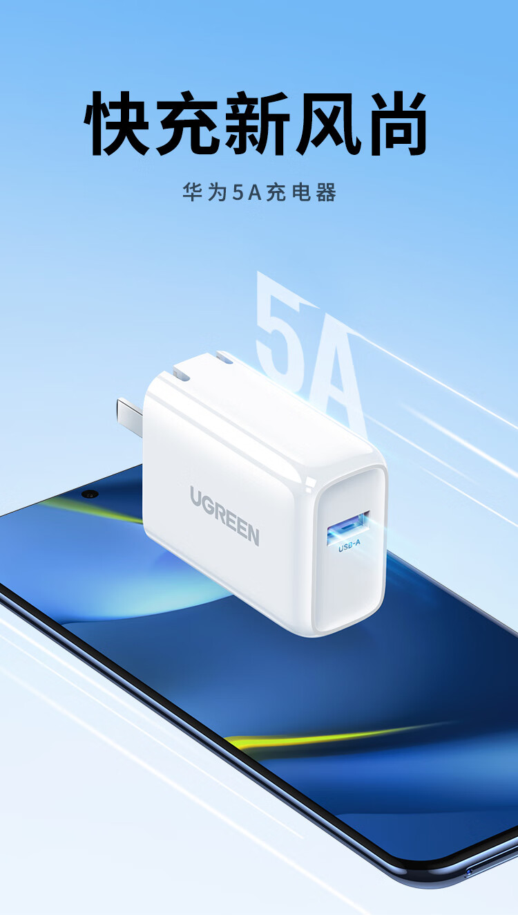 商品名稱:綠聯(lián) 22.5W超級(jí)快充頭 適用華為充電器榮耀小米USB數(shù)據(jù)線插頭