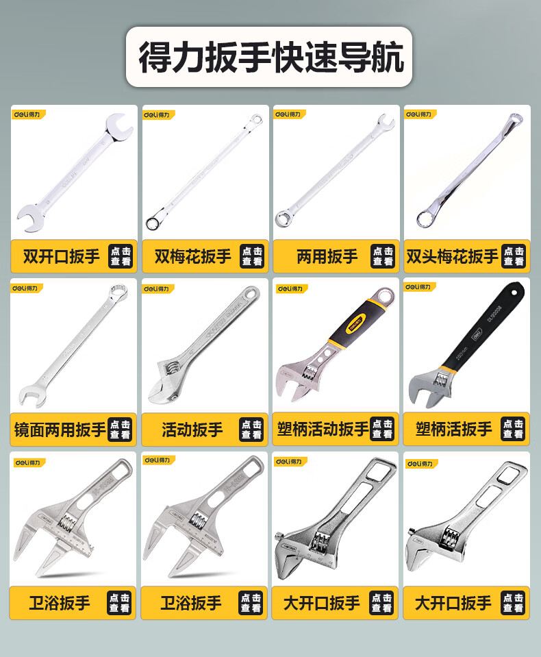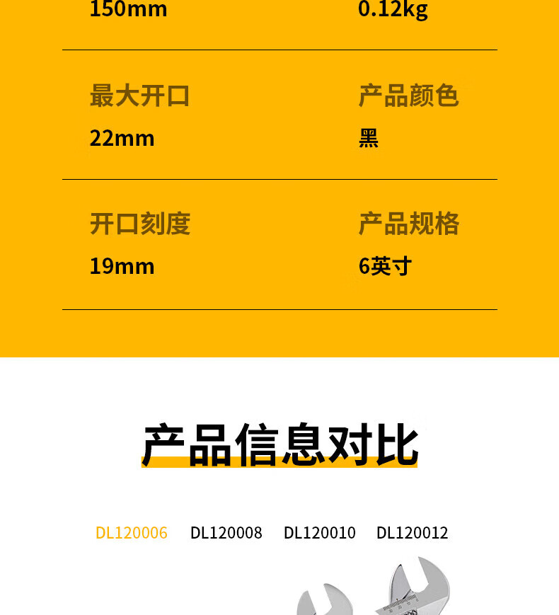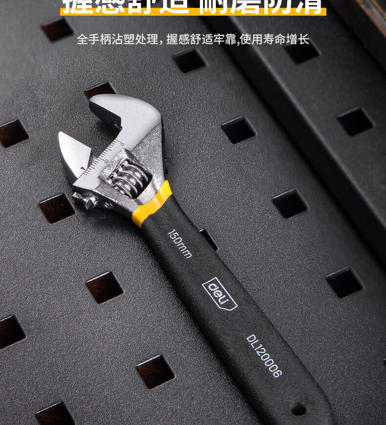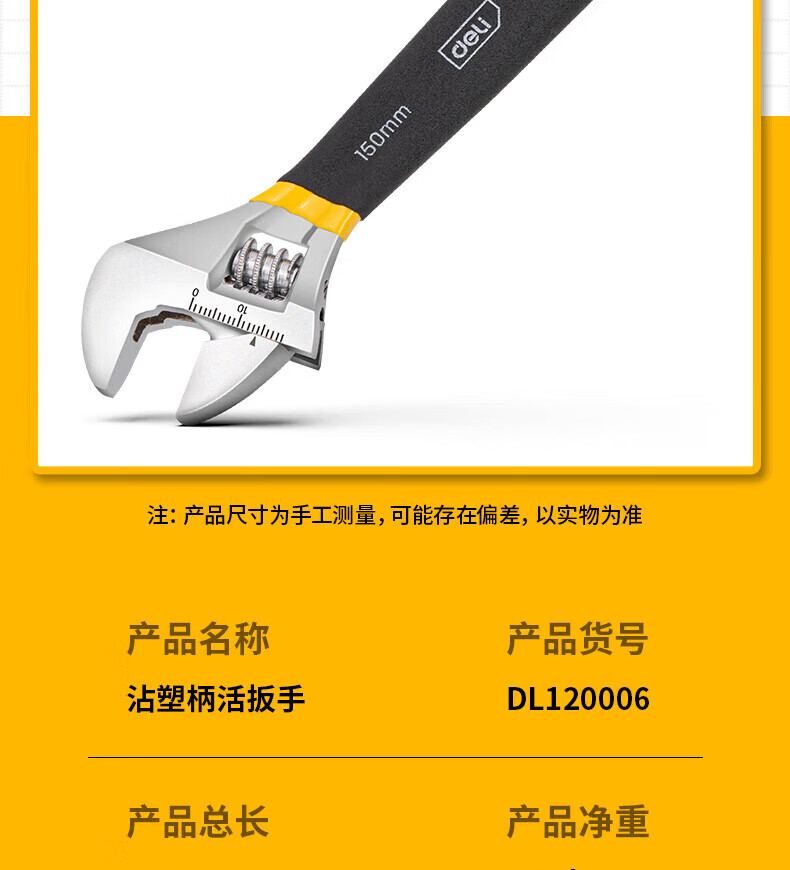 商品名稱:得力DL120006 沾塑柄活動扳手 萬能活口多功能扭力扳手6寸兩用活扳手