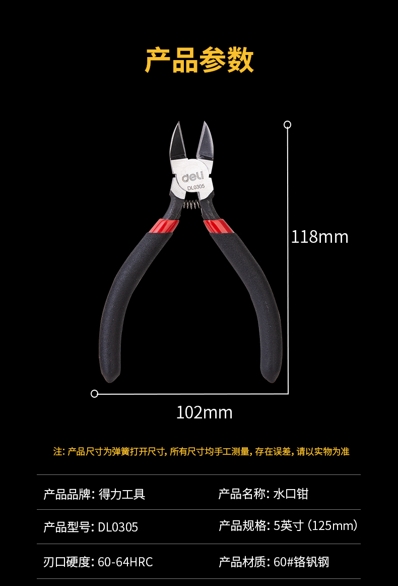 商品名稱:得力DL0305 防滑水口鉗 水口剪電子剪塑料鉗斜口鉗5英寸鉻釩鋼專業(yè)款
