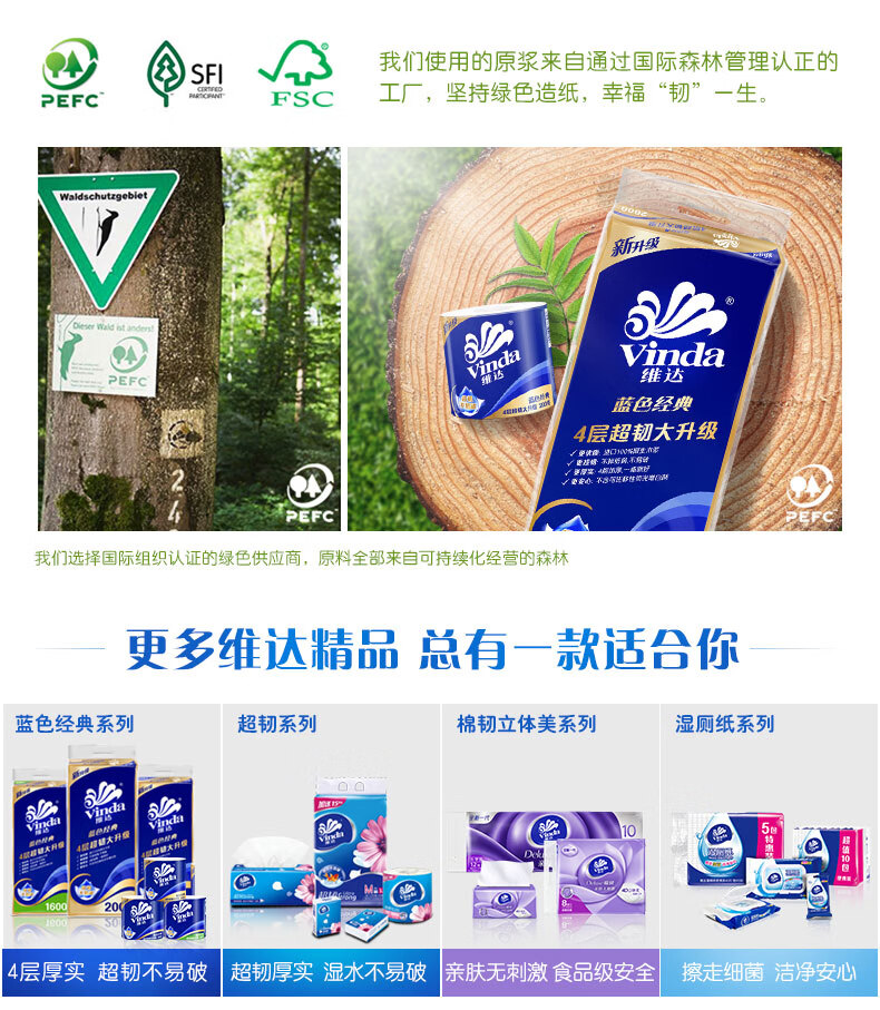 商品名稱:維達 有芯卷紙 藍色經(jīng)典4層200克*10卷 厚韌衛(wèi)生紙 卷筒紙