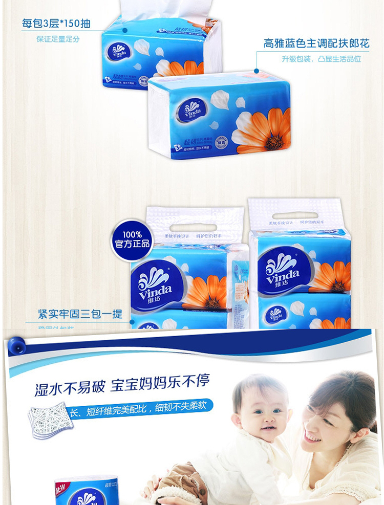 商品名稱:維達V2219 超韌3層抽取紙面巾150抽S碼 3包*16提 共48包 整箱