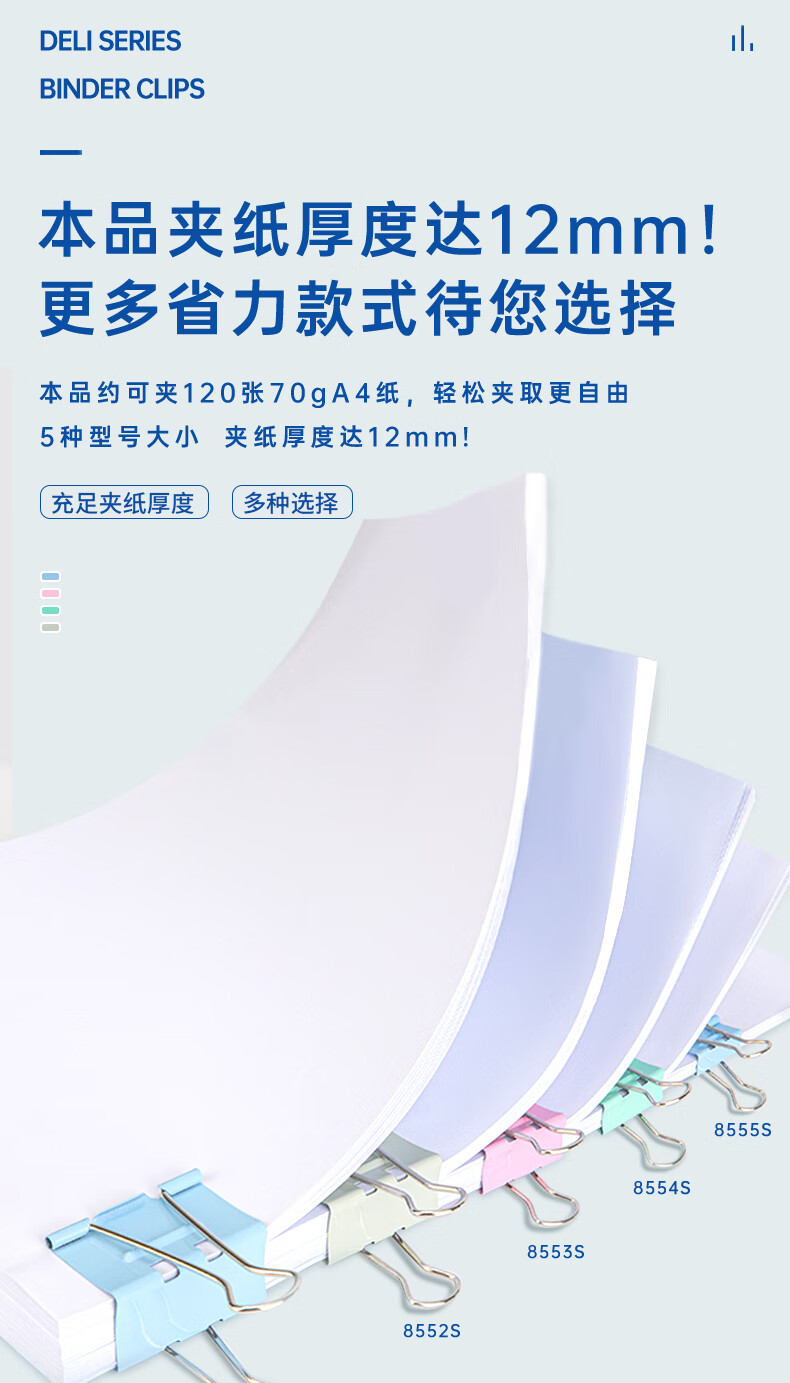 商品名稱(chēng):得力8553S 省力長(zhǎng)尾夾 3#32mm中號(hào)彩色金屬票夾燕尾夾票據(jù)文件夾子 辦公用品 24只/筒