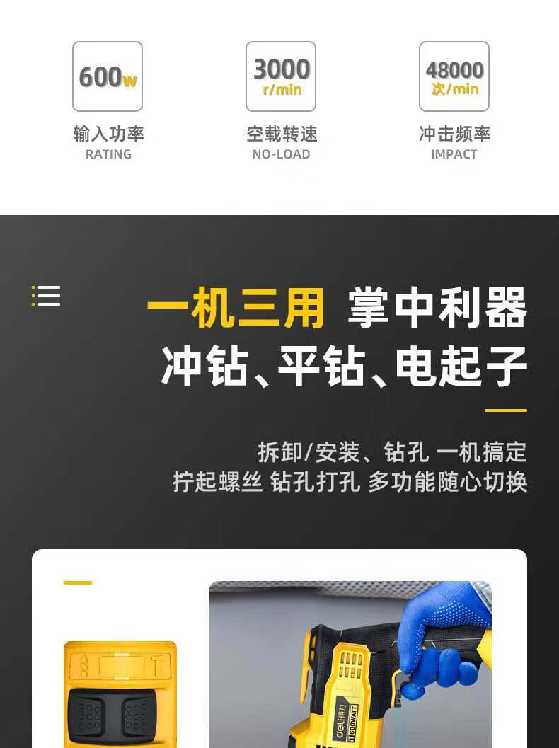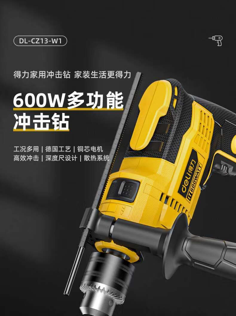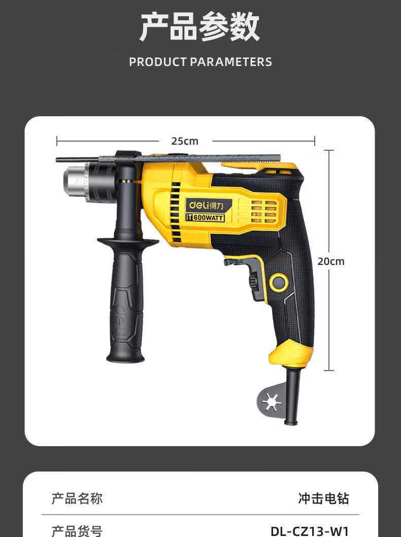 商品名稱:得力DL-CZ13-W1 沖擊電鉆 600W家用輕型手電鉆電動(dòng)螺絲刀交流電鉆