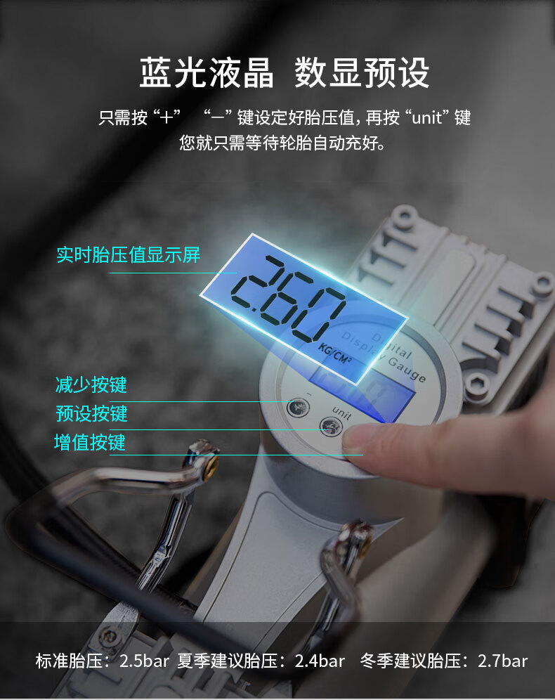 商品名稱:得力DL8060 車載充氣泵 雙缸高壓便攜式轎車輪胎家車用打氣泵筒電動汽車 雙30缸數(shù)顯預設胎壓充氣泵