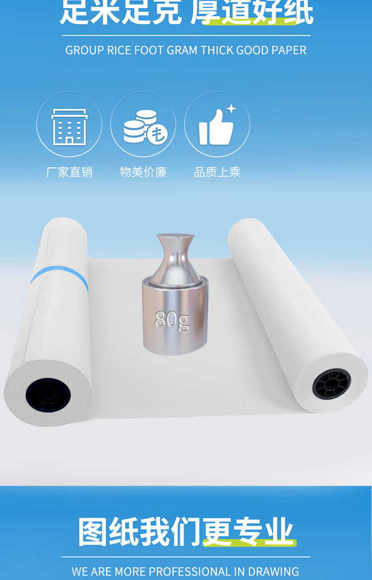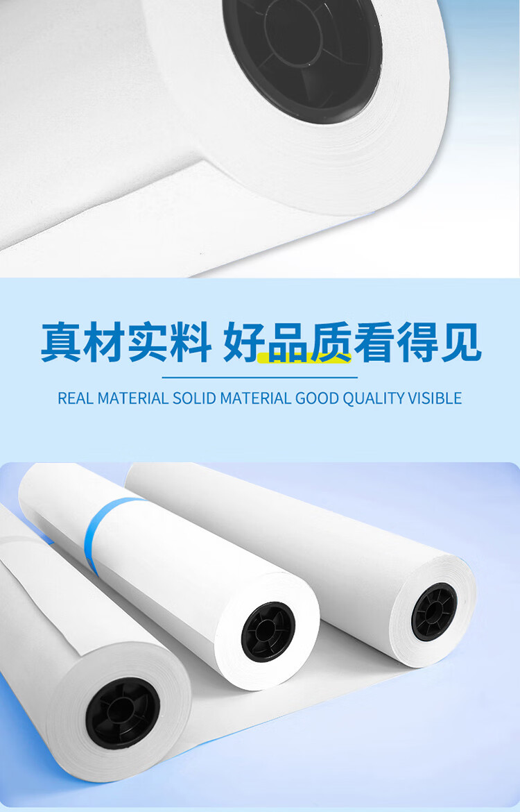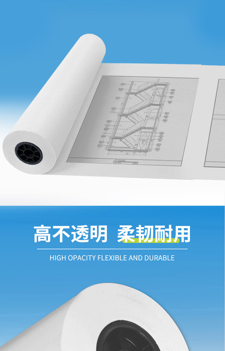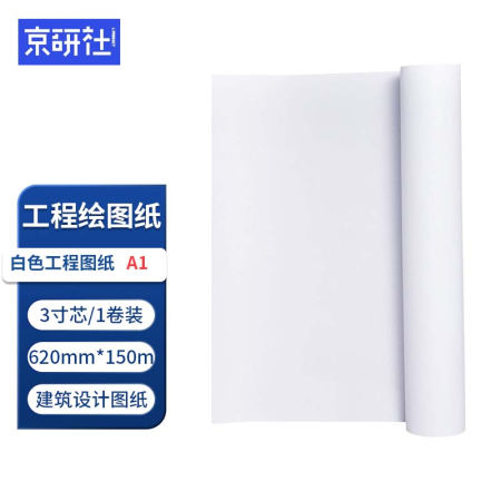 自營京研社 白色工程繪圖紙草稿白圖紙 3寸芯白圖紙A1寬620mm*150米-1卷裝
