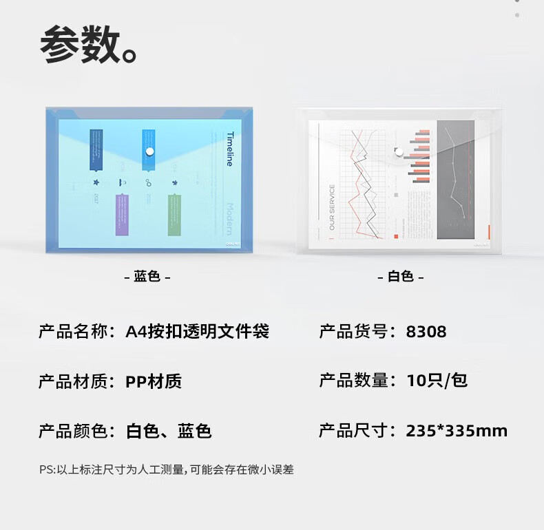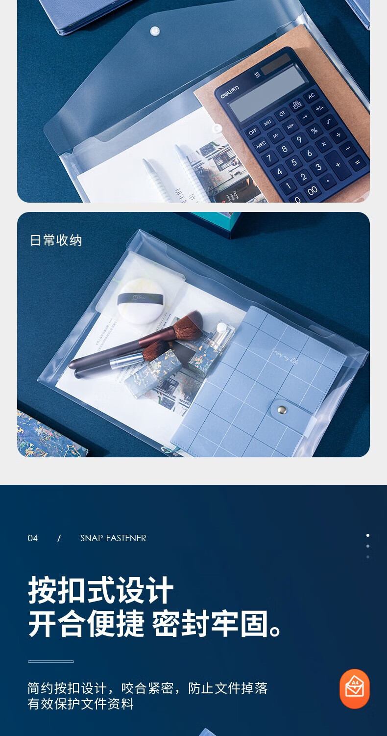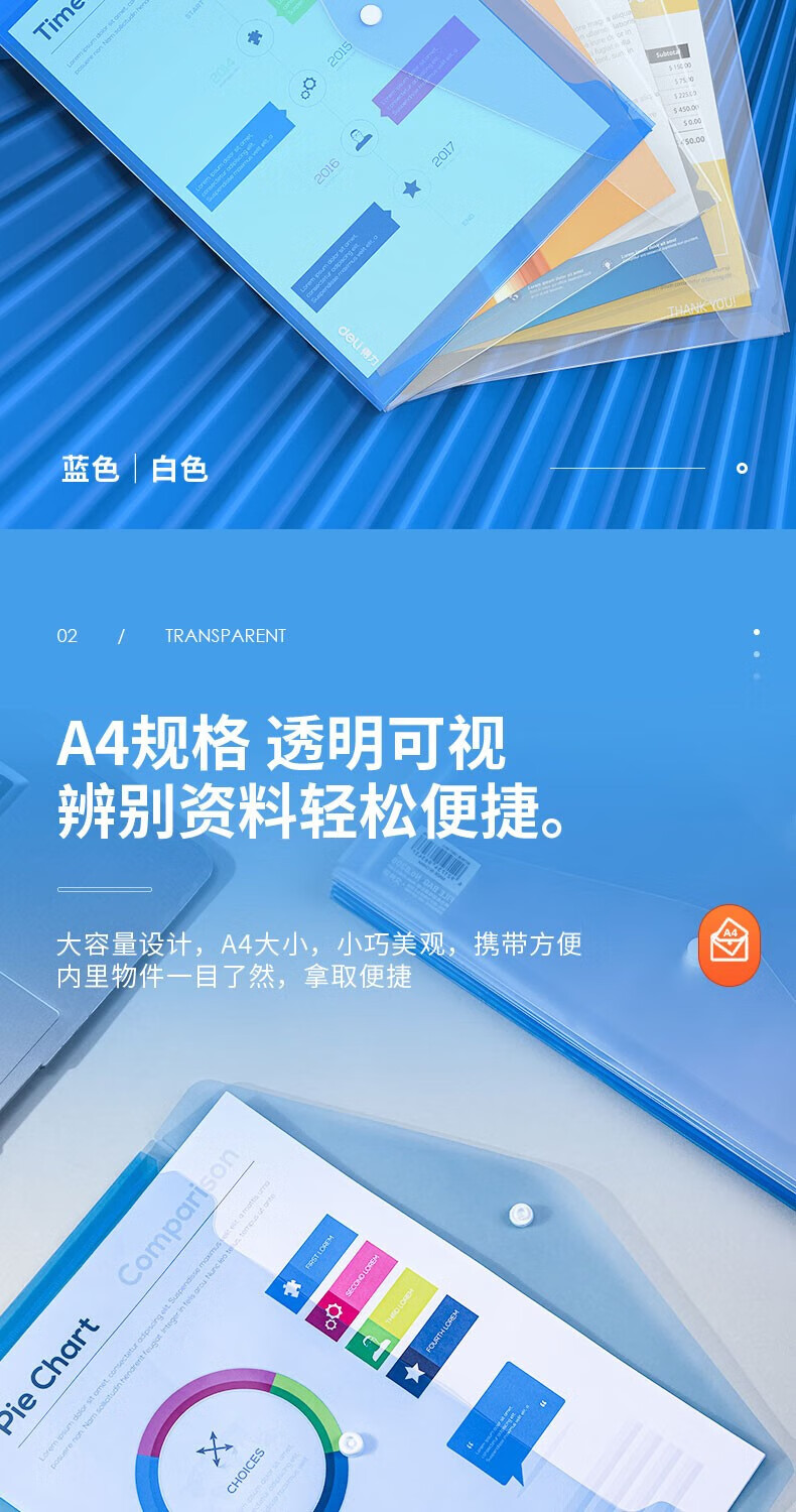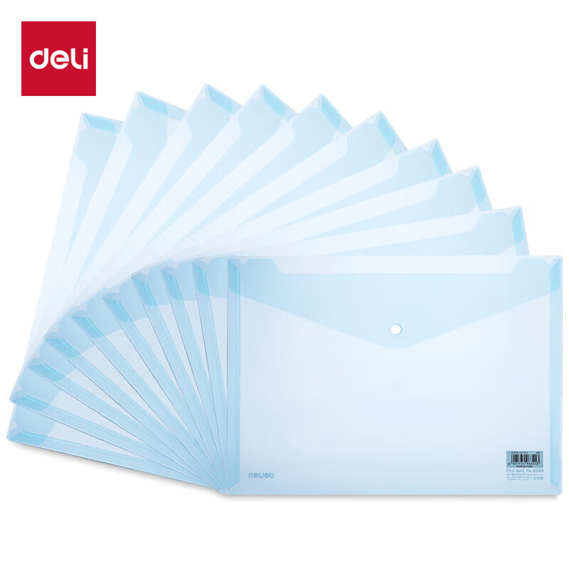 商品名稱:得力8308 透明文件袋 A4按扣資料袋 塑料檔案袋 文件保護 票據(jù)學(xué)生試卷收納袋 10只/包