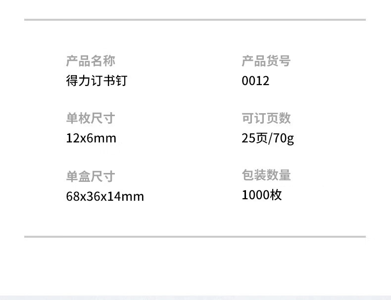 商品名稱:得力0012 高強(qiáng)度訂書釘 12#24/6訂書針 可訂25頁(yè) 1000枚/盒
