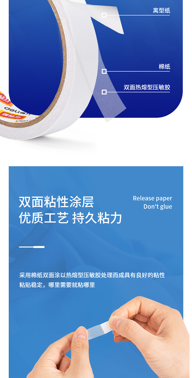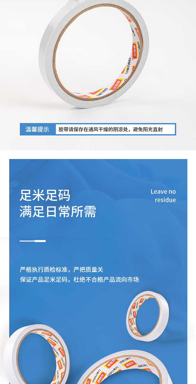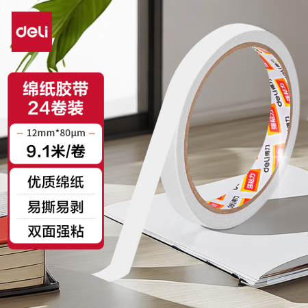 自營(yíng)得力30401 高粘棉紙雙面膠帶 12mm*10y(9.1m/卷) 白色 24卷/袋