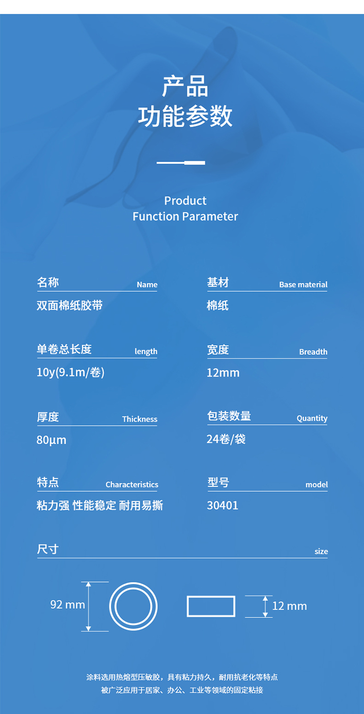商品名稱:得力30401 高粘棉紙雙面膠帶 12mm*10y(9.1m/卷) 白色 24卷/袋