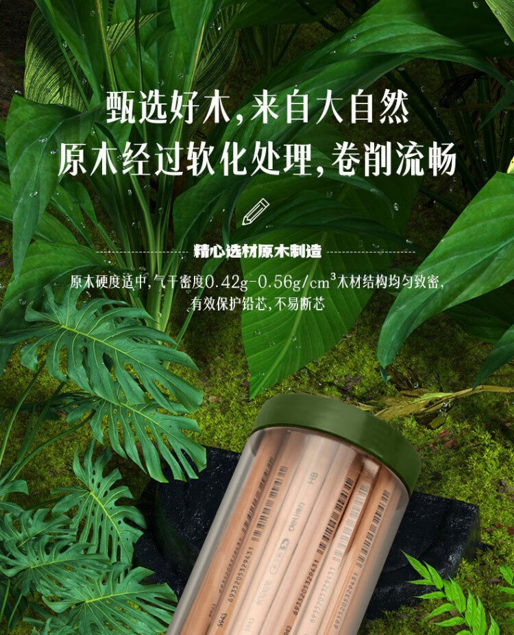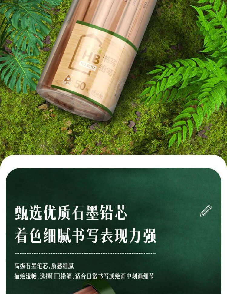 商品名稱:得力58117 原木鉛筆 木之然系列三角桿HB鉛筆 50支/桶