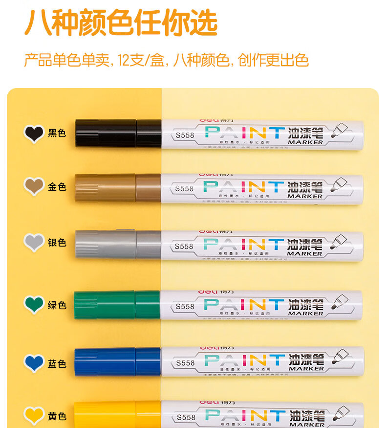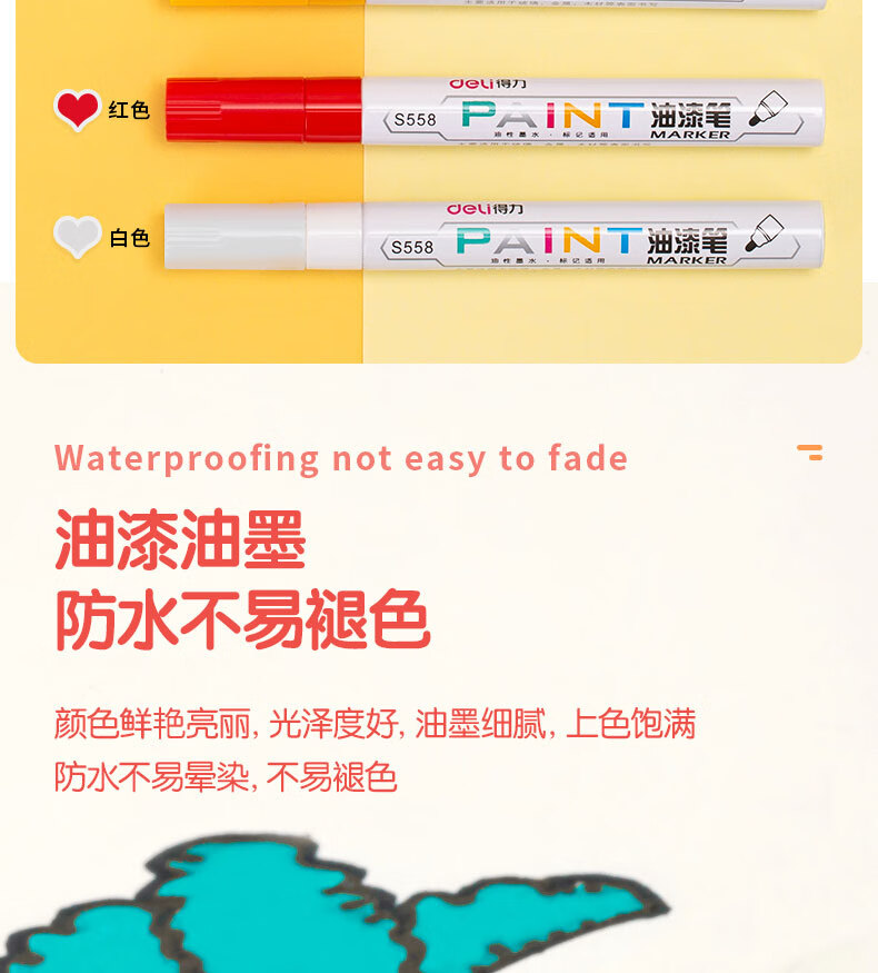 商品名稱:得力S558 油漆筆 粗桿修補(bǔ)記號(hào)筆 手繪涂鴉筆 2.0mm防水不掉色簽名筆簽到筆 單支裝