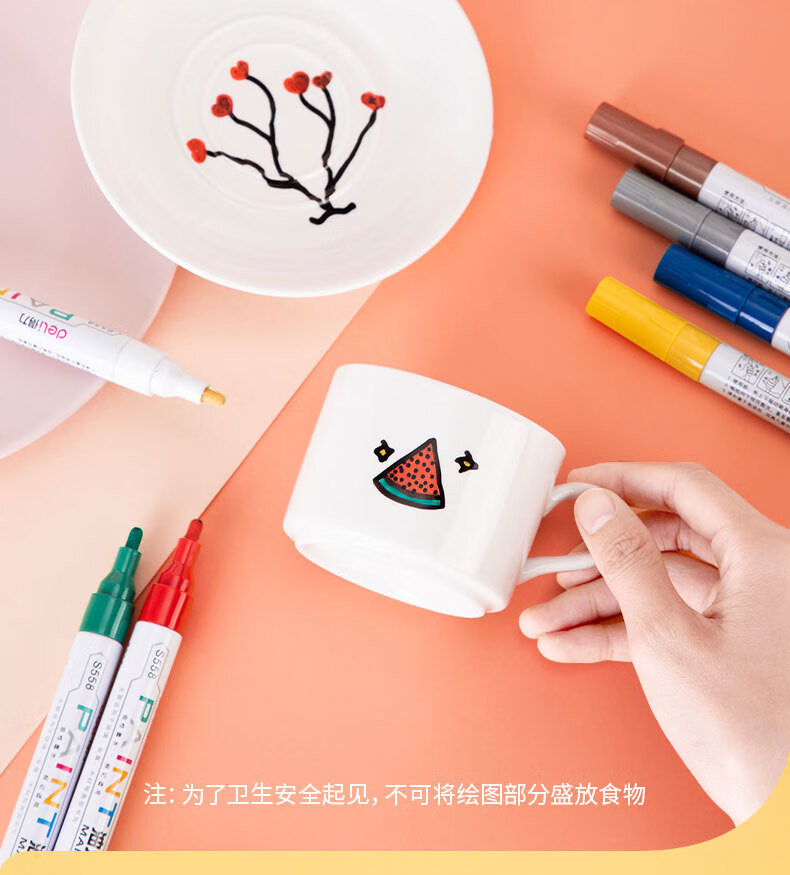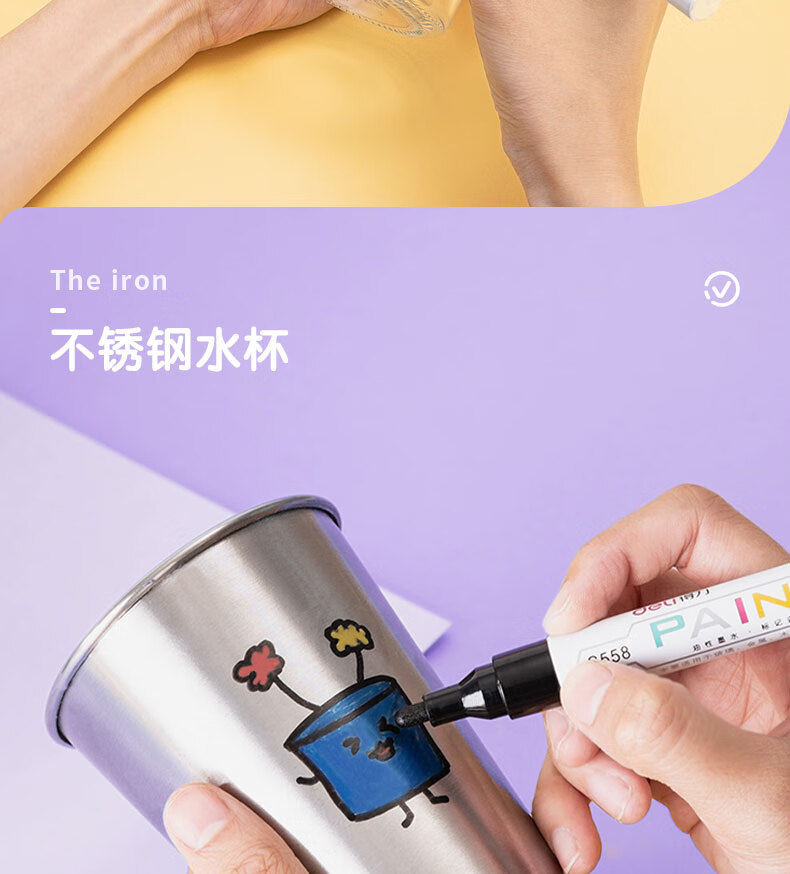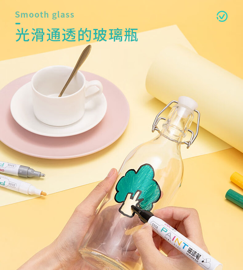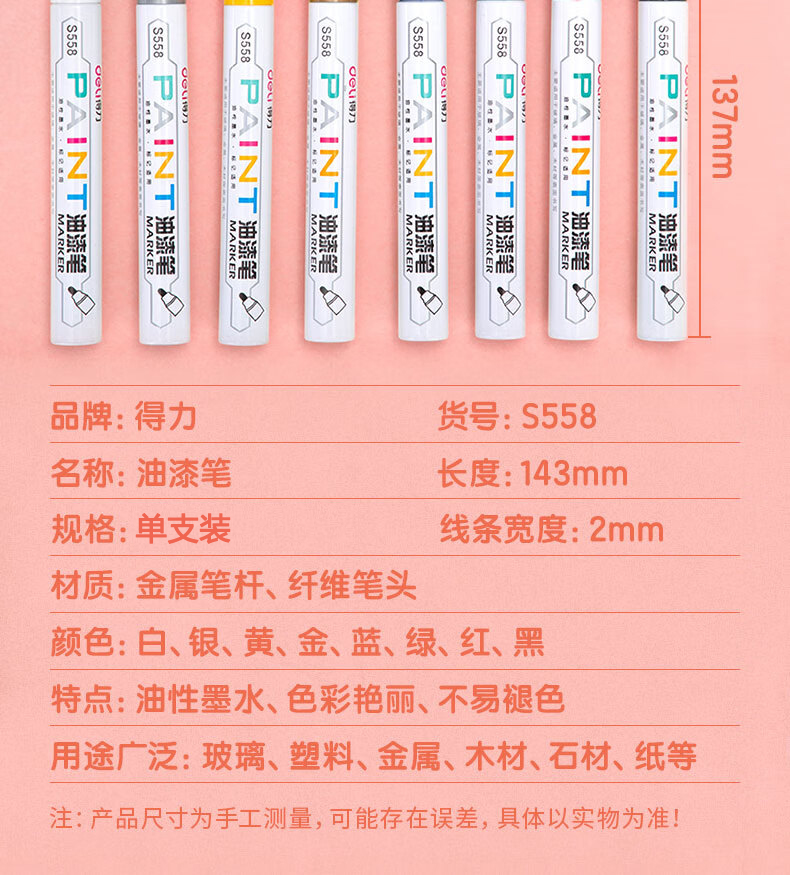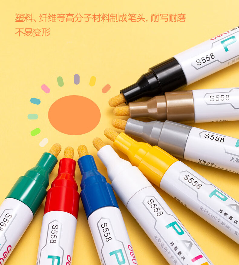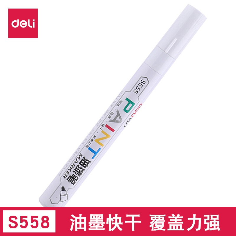 自營(yíng)得力S558 油漆筆 粗桿修補(bǔ)記號(hào)筆 手繪涂鴉筆 2.0mm防水不掉色簽名筆簽到筆 單支裝