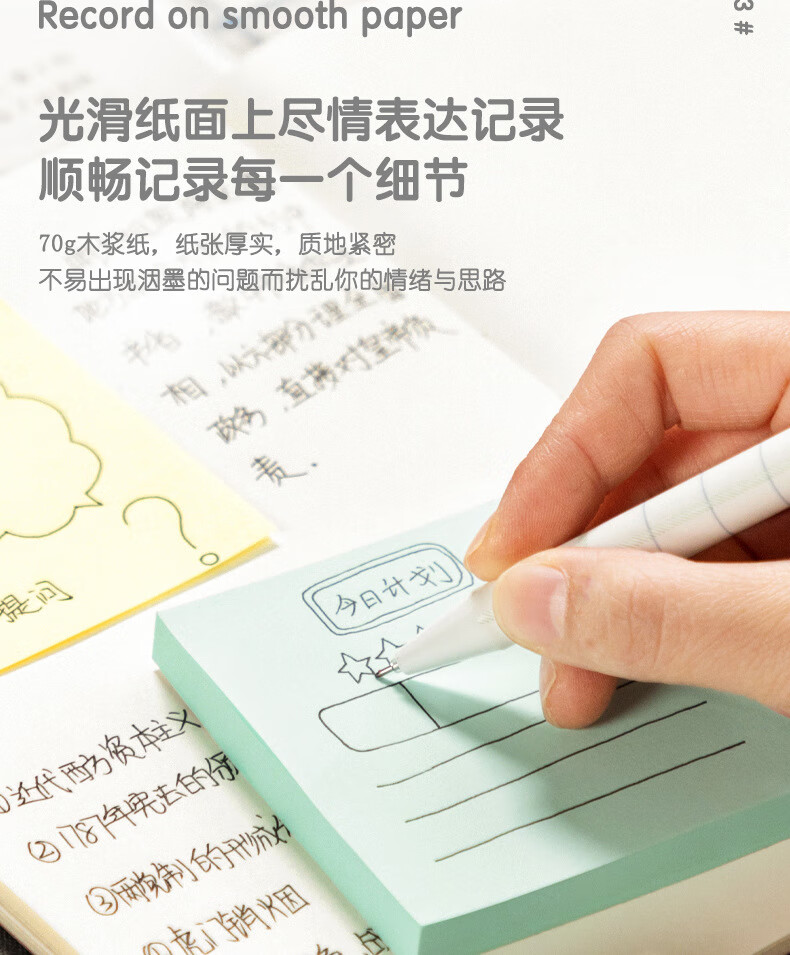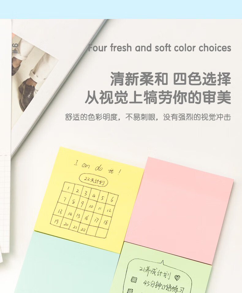 商品名稱:得力7156 便利貼 76*76mm備忘便簽紙易撕好貼粘貼牢固記事貼(混)100張/本