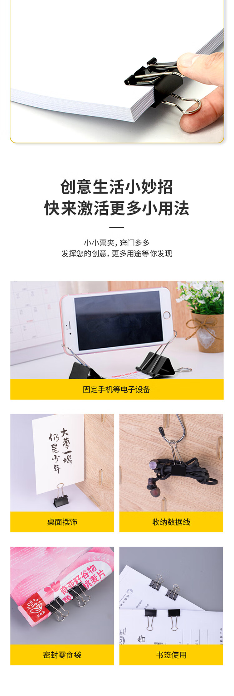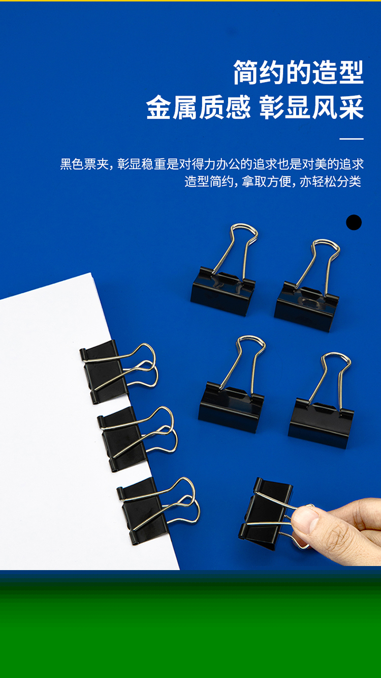 商品名稱:得力8563 黑色長尾夾 32mm中號金屬燕尾夾票據(jù)文件夾子 24只/筒
