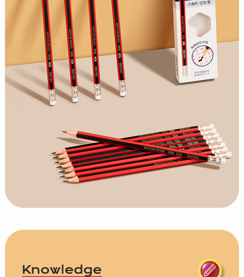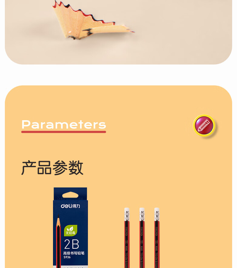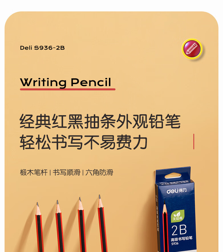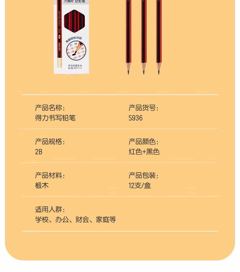 商品名稱:得力S936 鉛筆 2B高級鉛筆(紅色)(12支/盒)