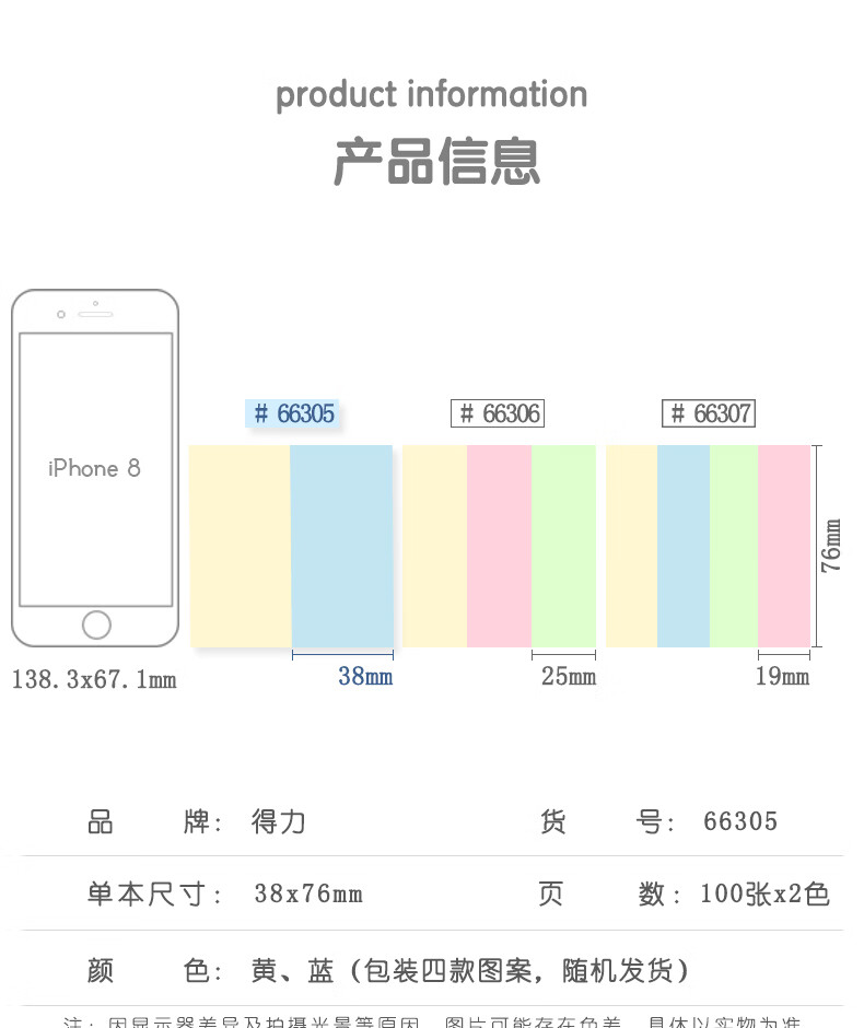 商品名稱:得力66305 便利貼 2色分條便簽紙 76*38mm記事貼 200張/袋