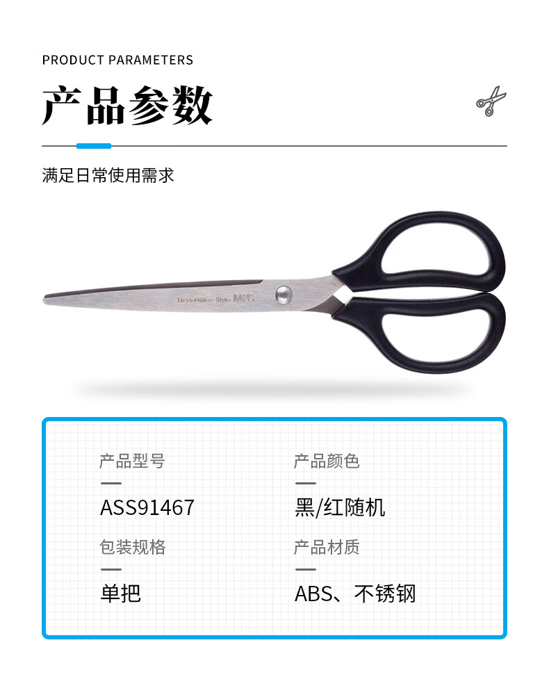 商品名稱:晨光ASS91467 剪刀 180mm中號手工剪紙刀 顏色隨機 單把裝