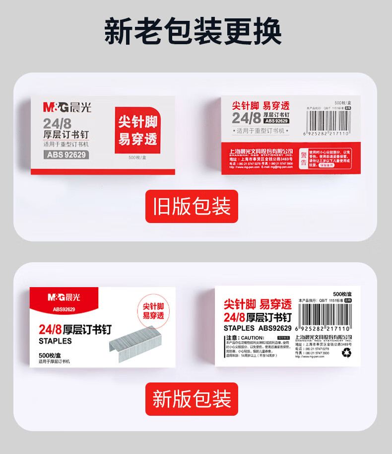 自營晨光ABS92629 訂書釘 24/8號厚層易穿透訂書針 辦公用品 500枚/盒 單盒裝