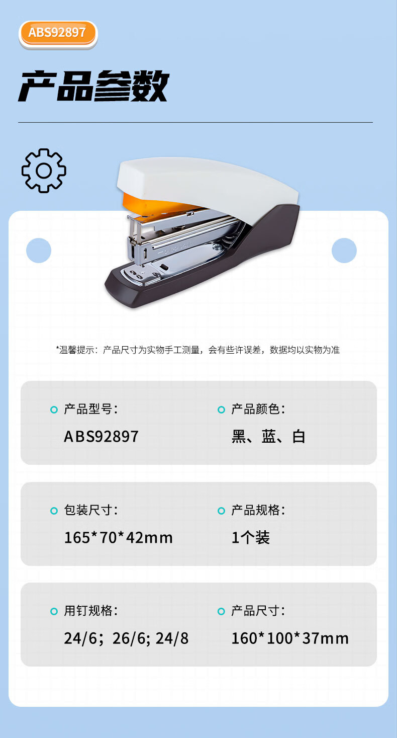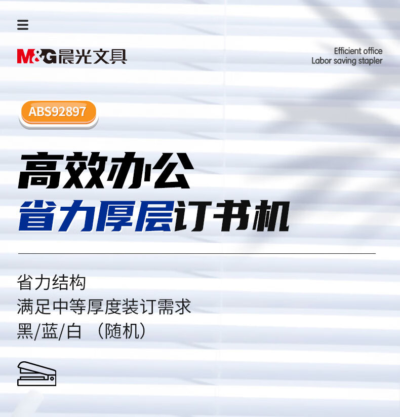商品名稱:晨光ABS92897 12#厚層訂書機 商務(wù)省力訂書器 辦公用品 單個裝 顏色隨機