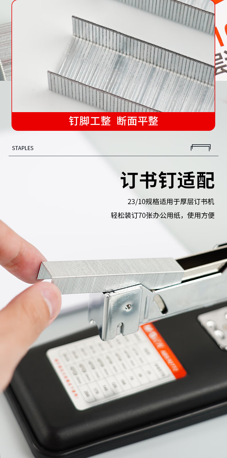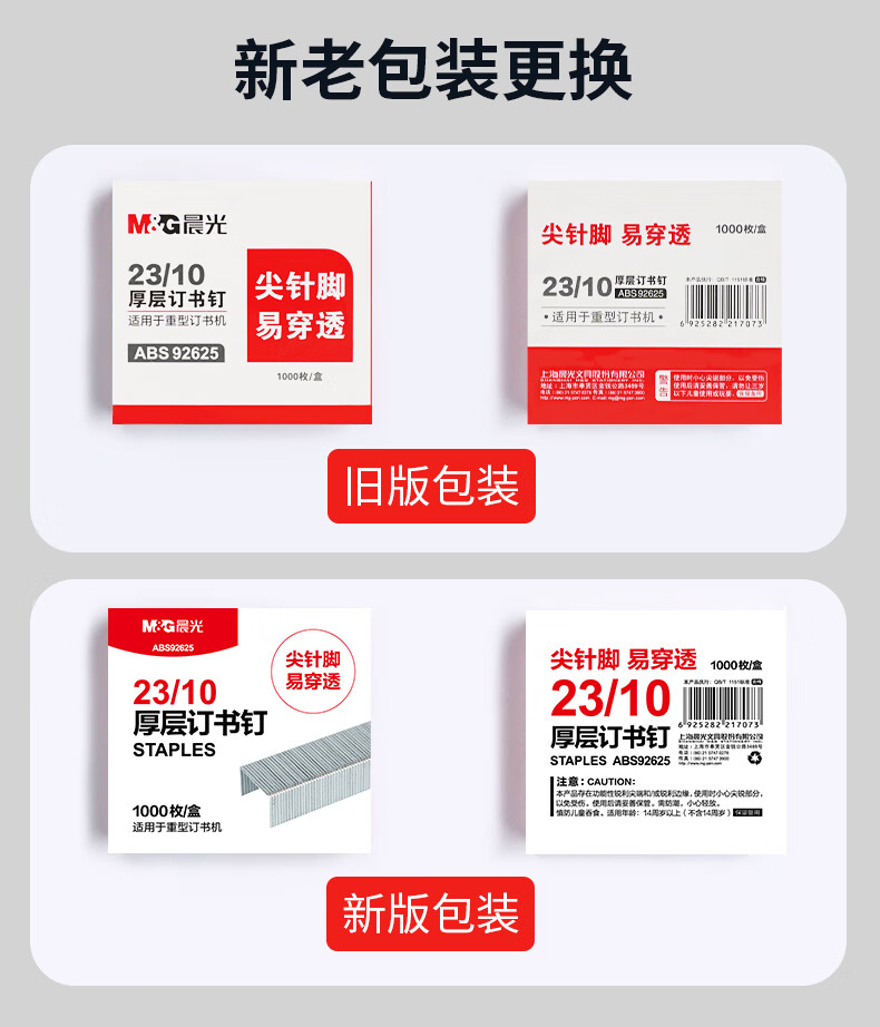 商品名稱:晨光ABS92625 訂書(shū)釘 23/10號(hào)厚層易穿透重型訂書(shū)針 1000枚/盒 5盒裝