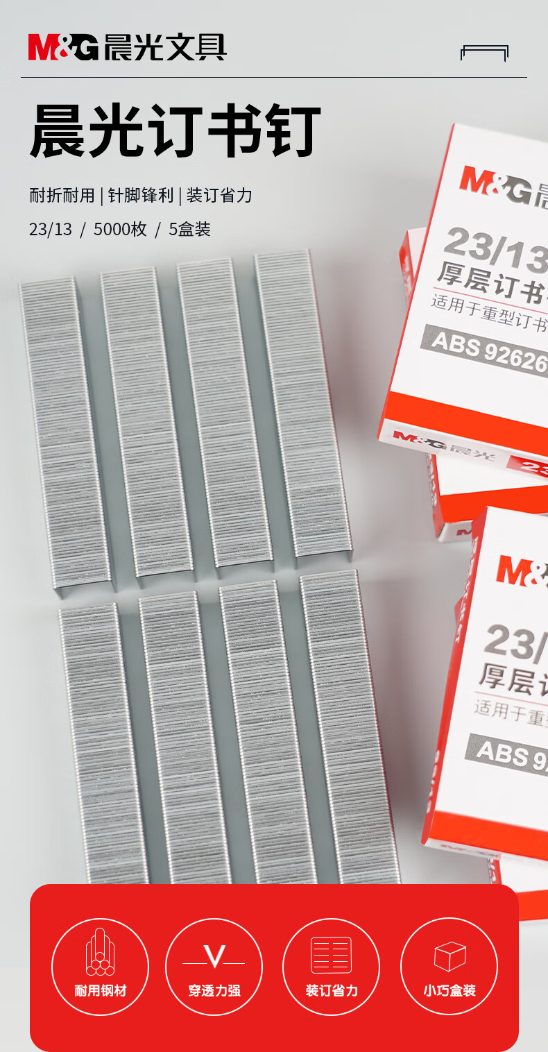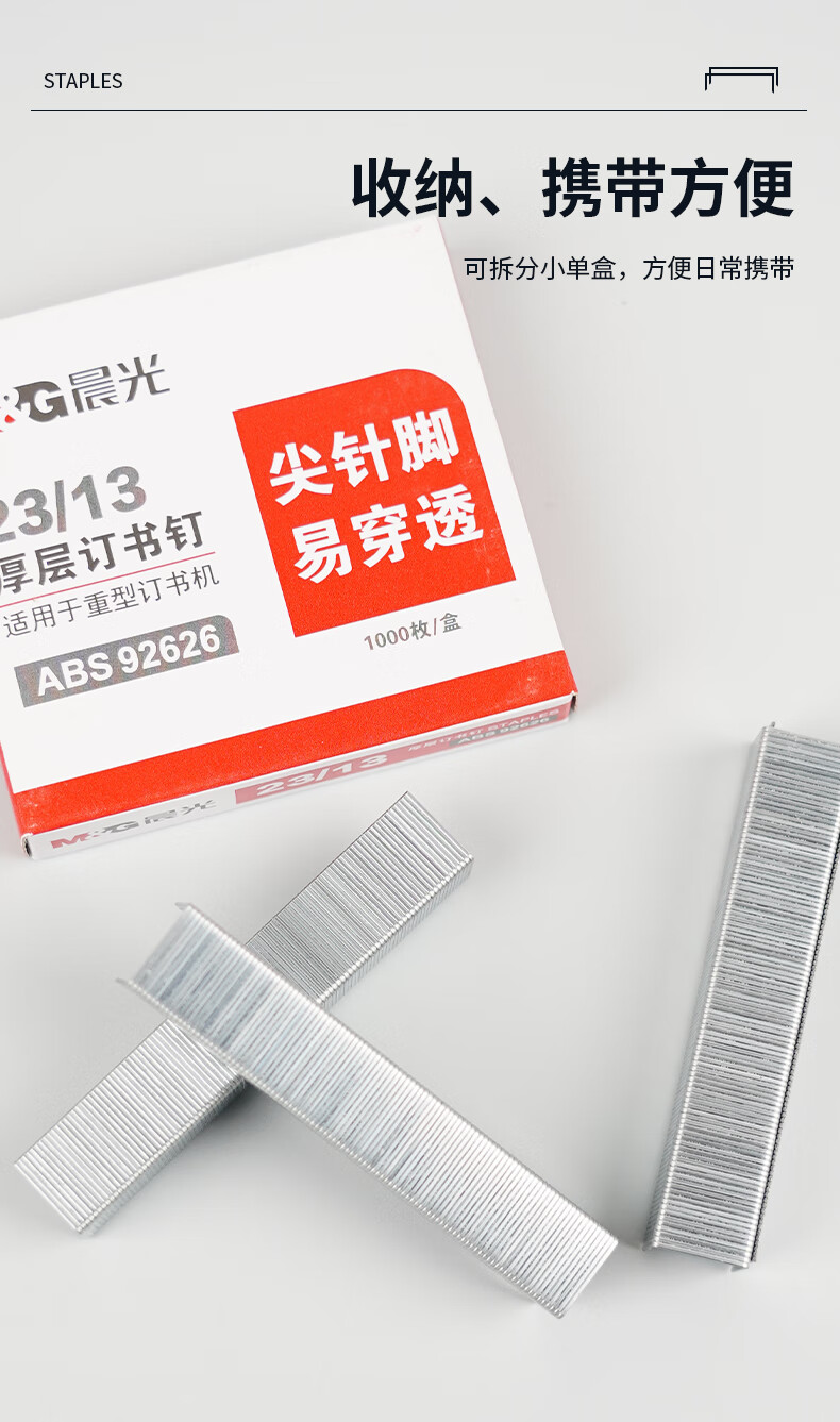 商品名稱:晨光ABS92626 訂書釘 23/13號厚層易穿透訂書針 重型訂書釘1000枚/盒 5盒裝