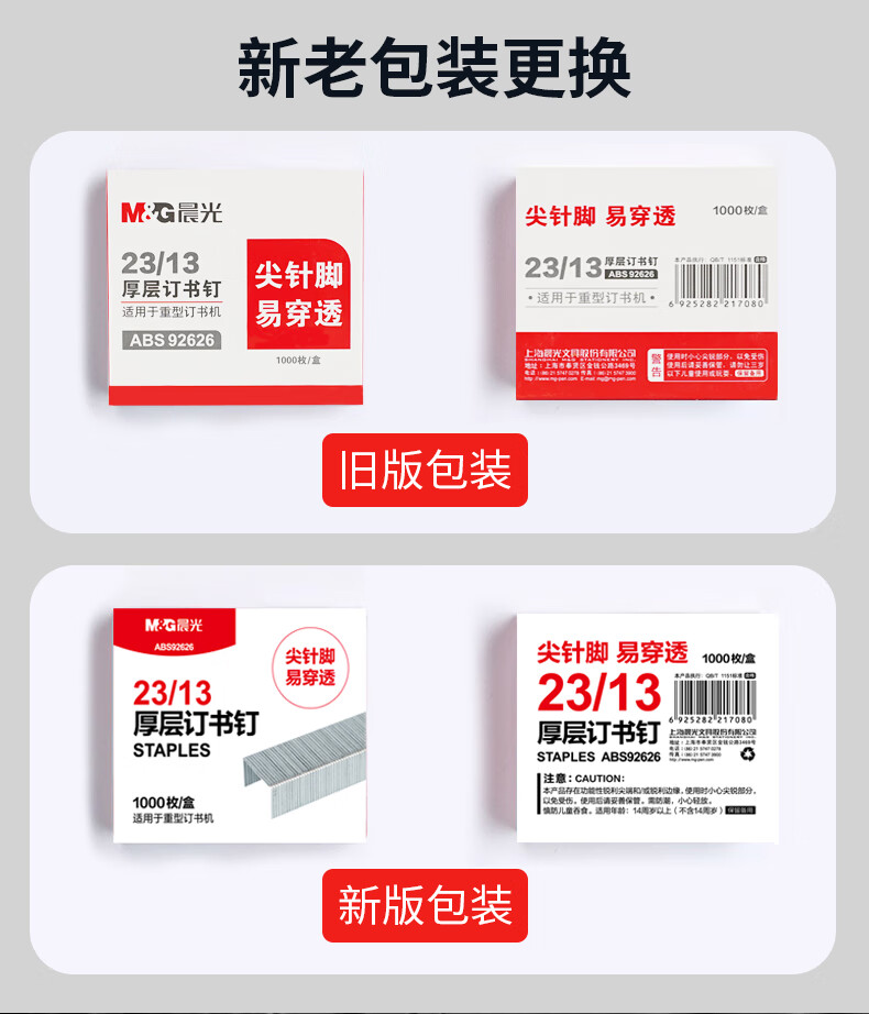 自營晨光ABS92626 訂書釘 23/13號厚層易穿透訂書針 重型訂書釘1000枚/盒 5盒裝