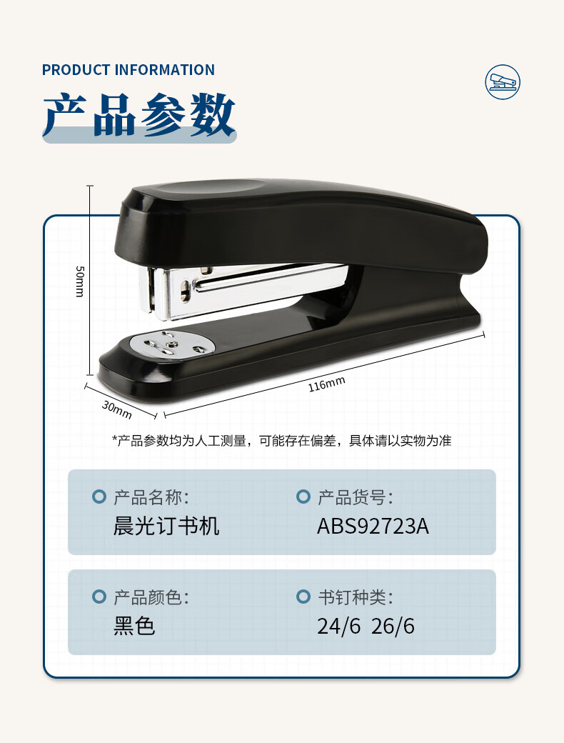 商品名稱:晨光ABS92723 12#訂書機(jī) 耐用便攜訂書器 辦公用品 單個裝