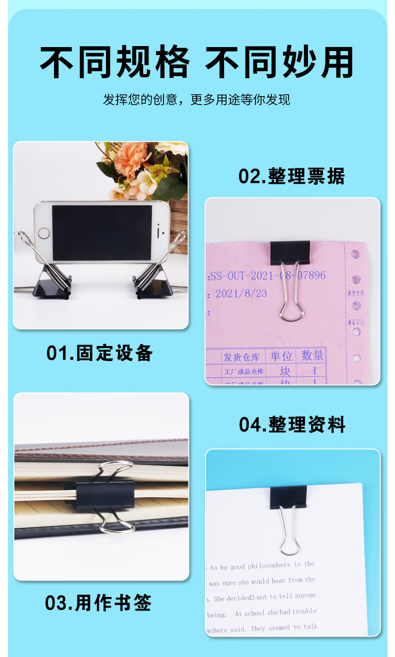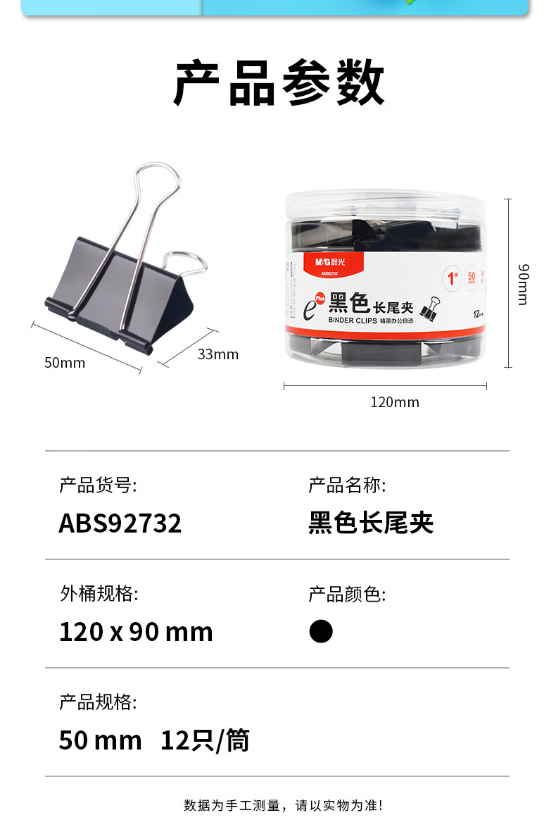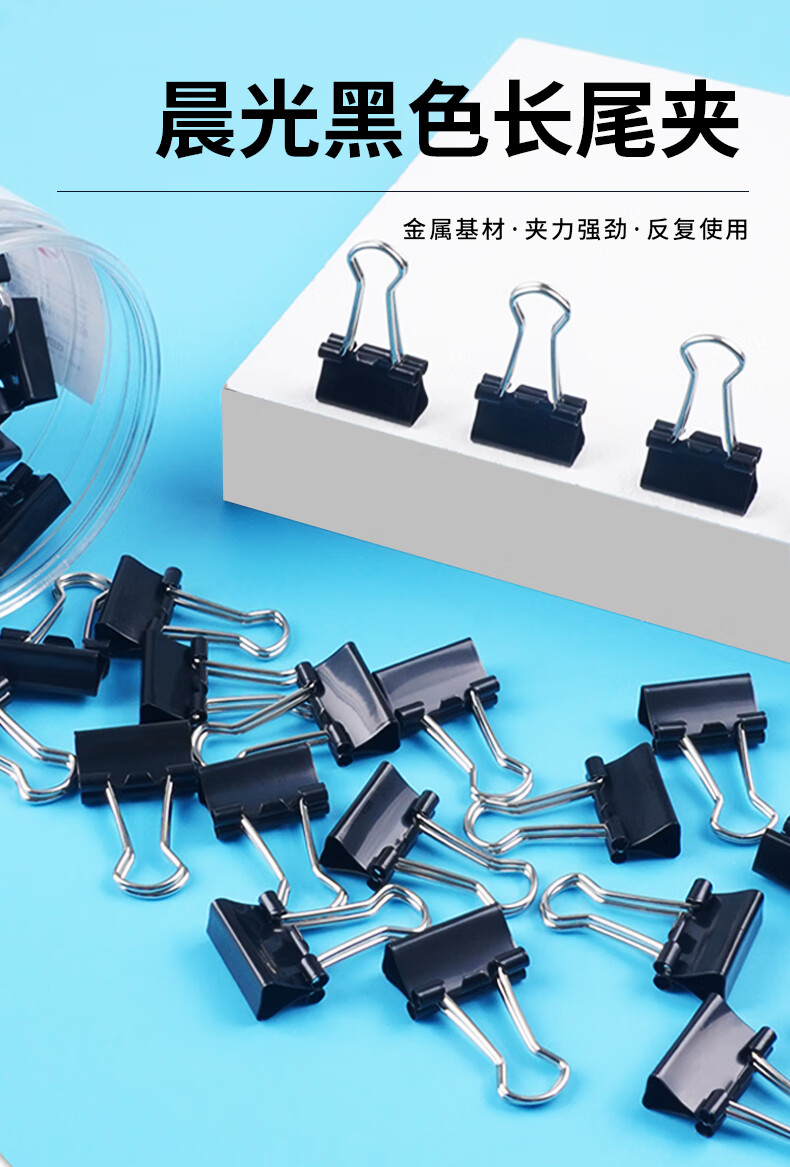 商品名稱:晨光ABS92732 黑色長尾夾 1#50mm大號金屬票據(jù)夾 Eplus系列辦公燕尾夾 12只/筒