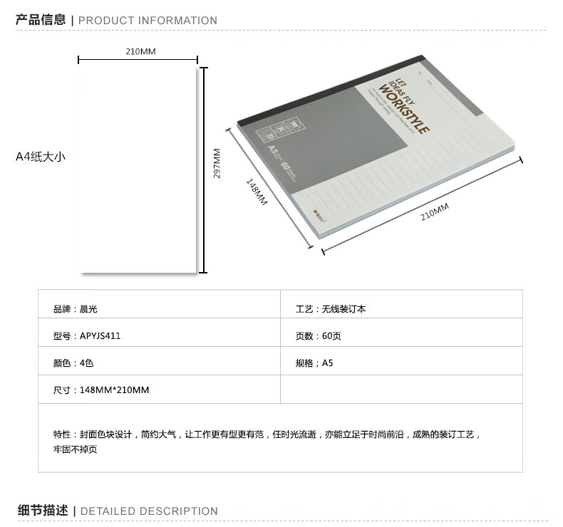 商品名稱:晨光APYJS411 軟抄本 A5/60頁無線裝訂本記事本筆記本 顏色隨機 單本裝