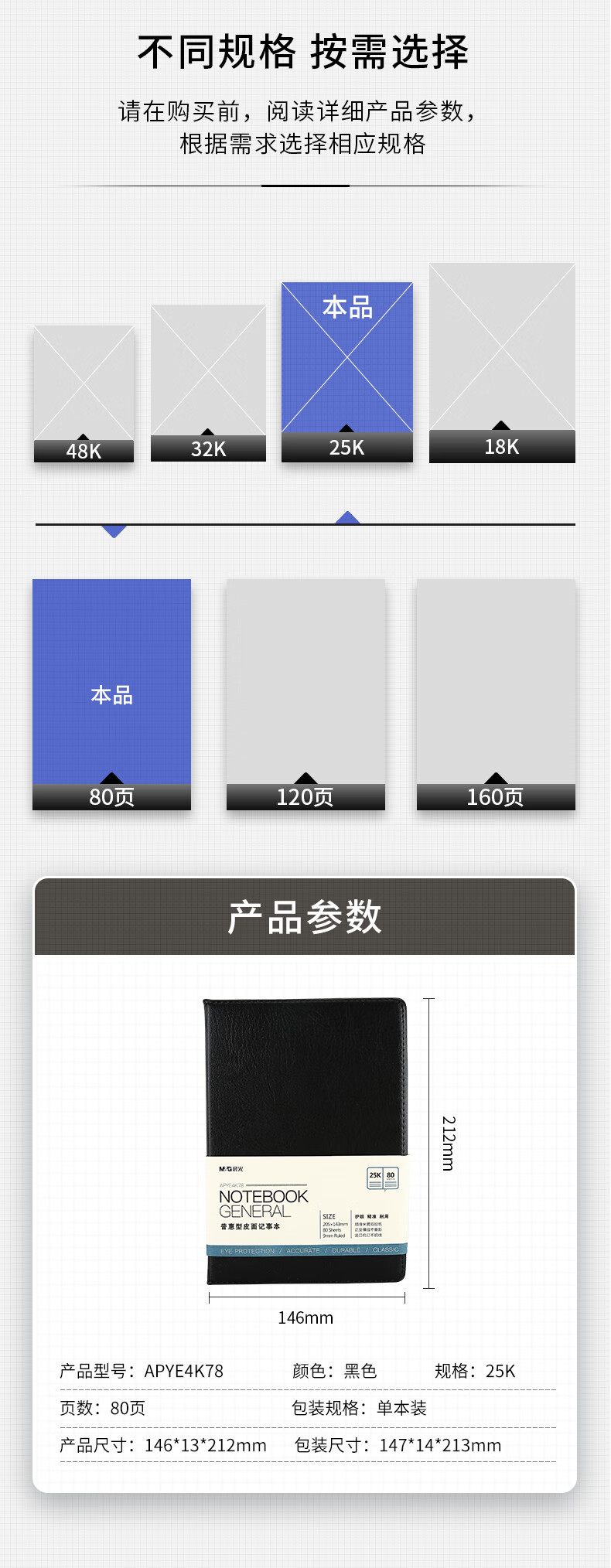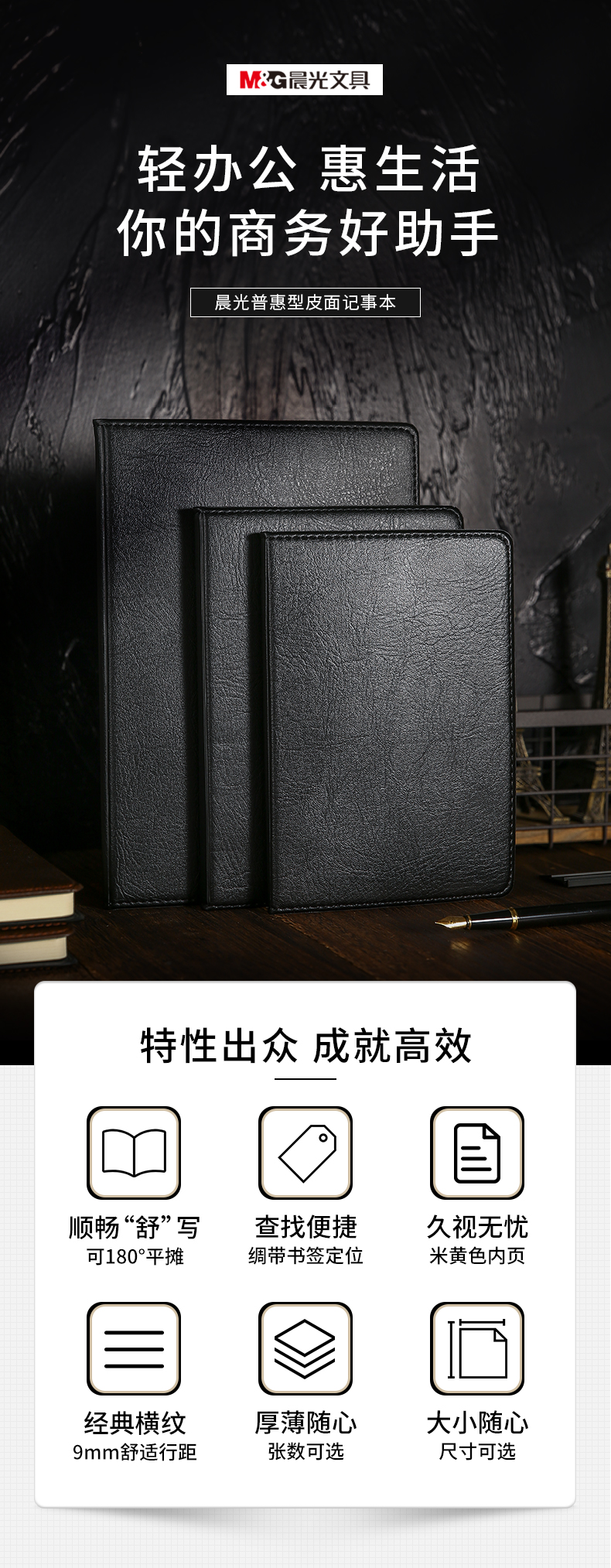 商品名稱:晨光APYE4K78 筆記本 25K/80張黑色會議記錄皮面本 商務(wù)記事本子 單本裝