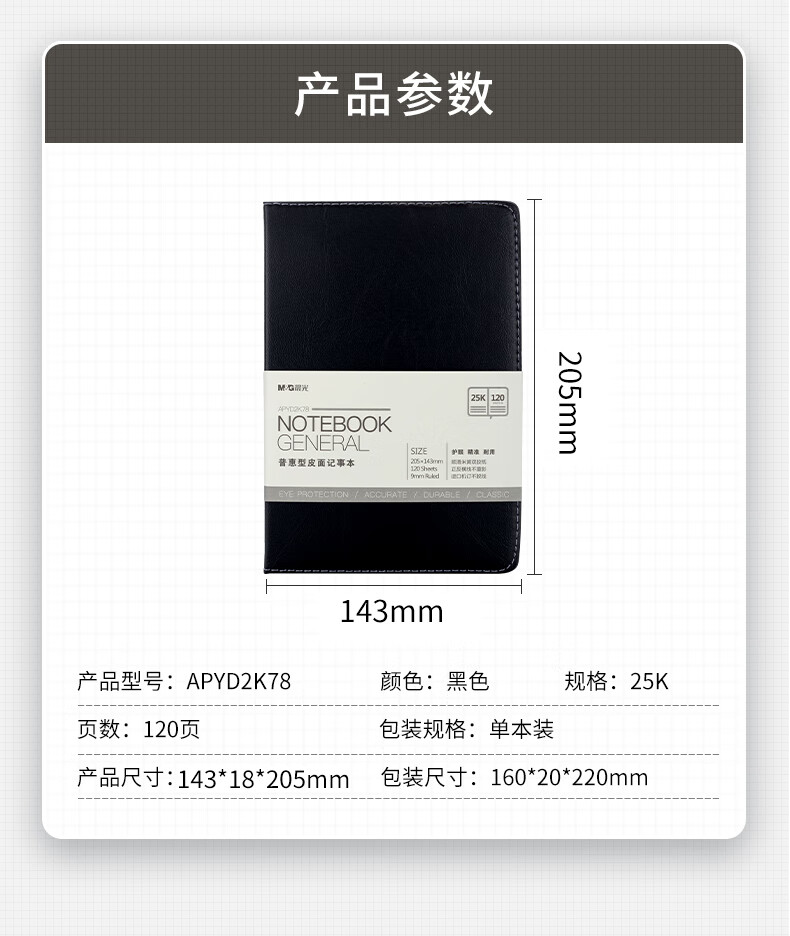 商品名稱:晨光APYD2K78 筆記本 A5/25K會議記錄皮面本120張黑色記事本 單本裝