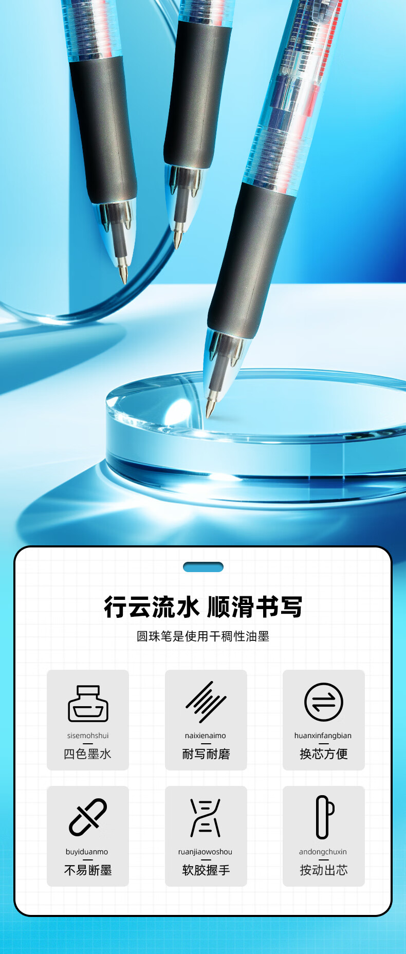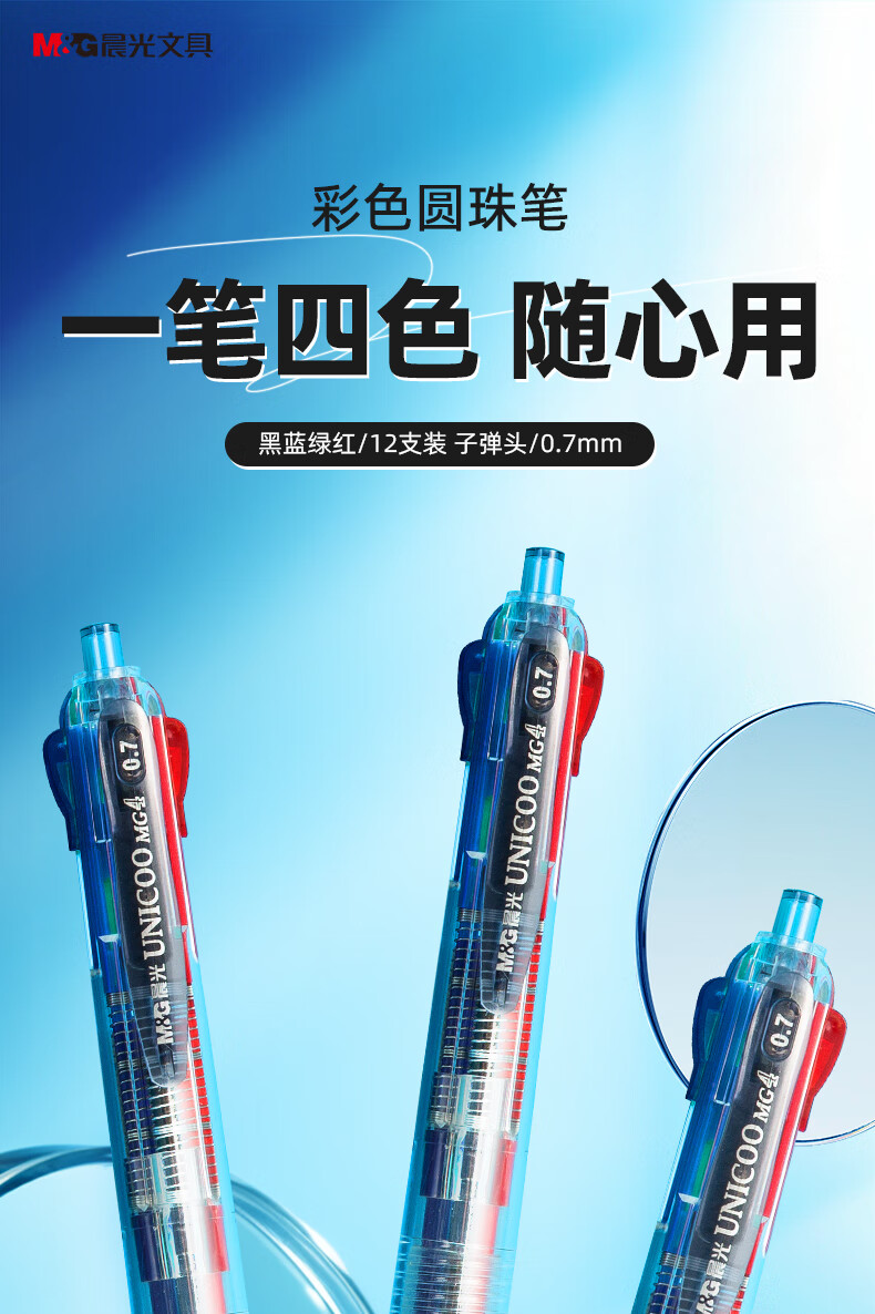 自營晨光BP8030 彩色按動圓珠筆 0.7mm子彈頭4色原子筆 透明筆桿中油筆 12支/盒