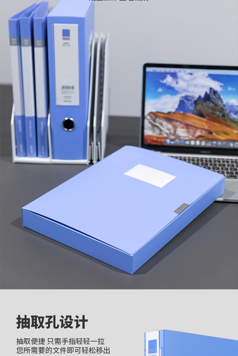 商品名稱:得力5622ES 粘扣檔案盒 35mmA4塑料文件盒收納資料盒 辦公用品 藍(lán)色 單只裝