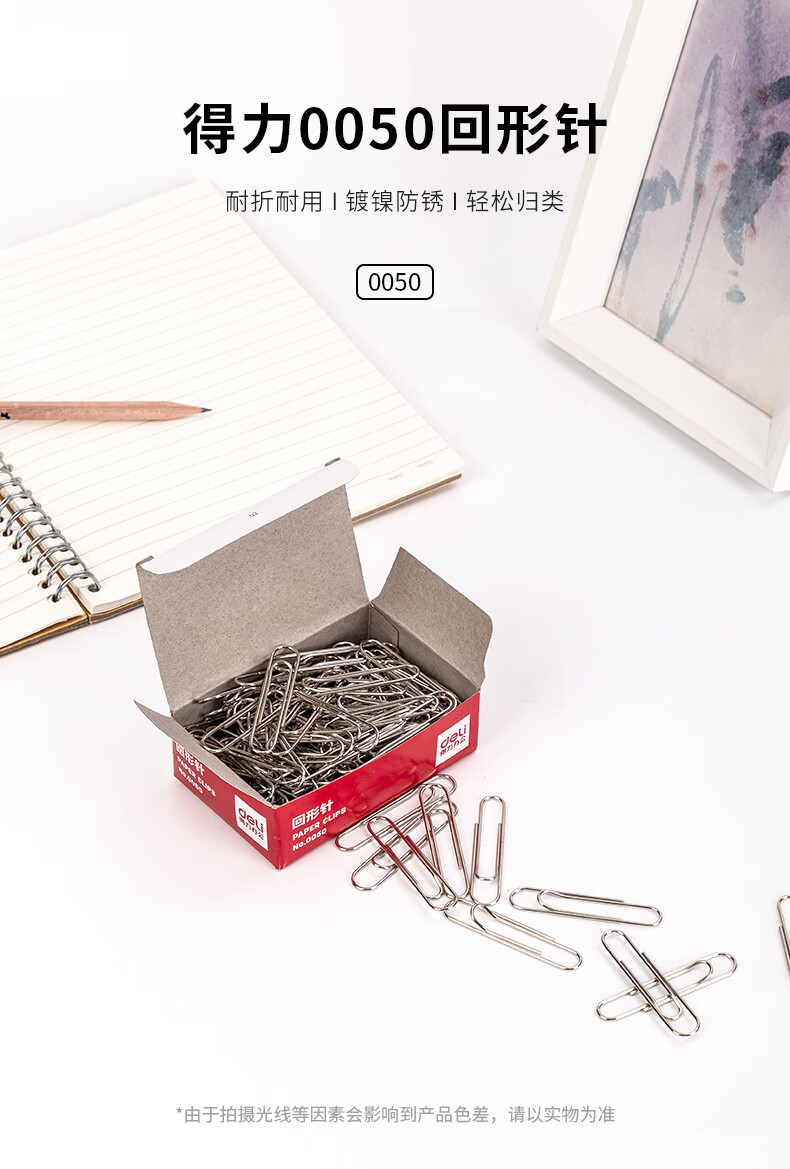 商品名稱:得力0050 回形針 50mm大號電鍍金屬曲別針 辦公用品文件收納 100枚/盒