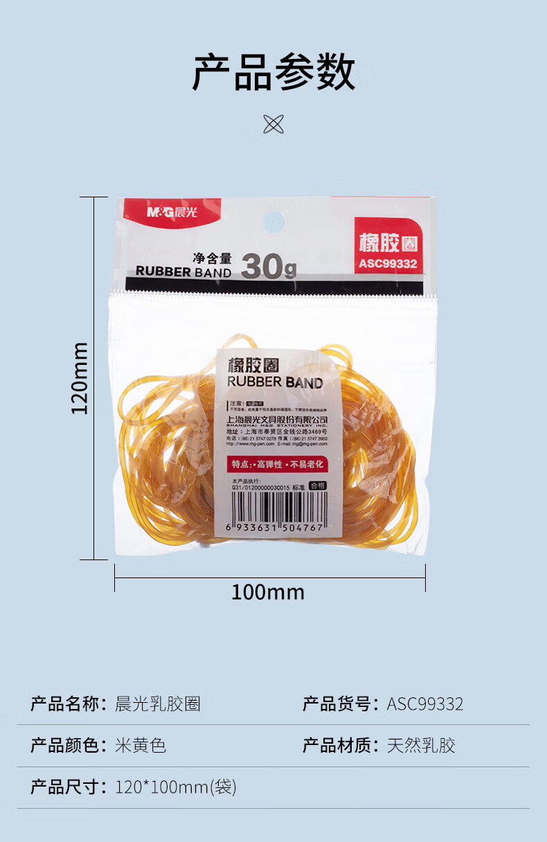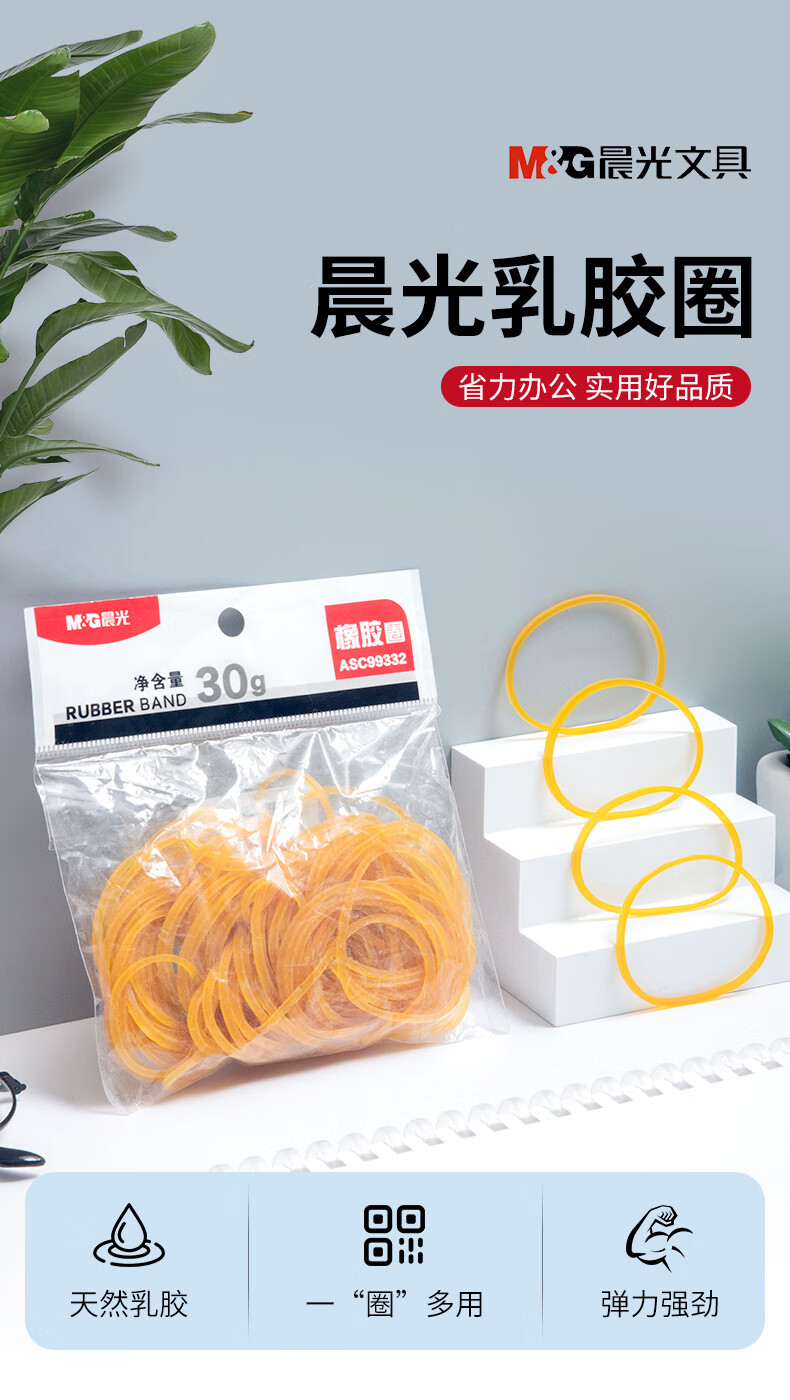 商品名稱:晨光ASC99332 乳膠圈 橡膠圈牛皮筋 30g高彈力橡皮筋 財(cái)務(wù)用品 單位:包