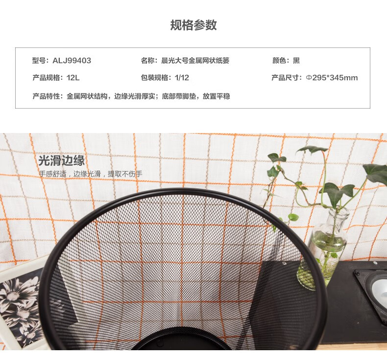 商品名稱(chēng):晨光ALJ99403 大號(hào)金屬網(wǎng)狀垃圾桶 辦公垃圾分類(lèi)紙簍 穩(wěn)固型垃圾簍 單個(gè)裝