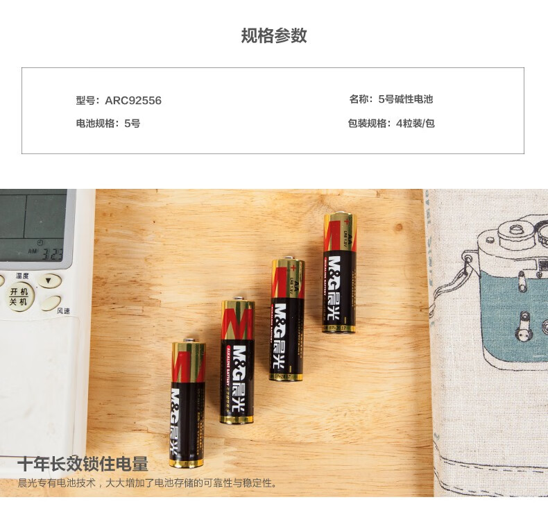 商品名稱:晨光ARC92556 5號(hào)電池 兒童玩具遙控器鼠標(biāo)無汞堿性電池 4粒/卡