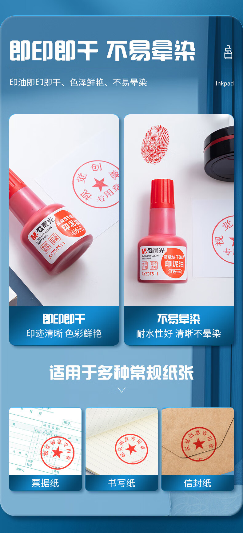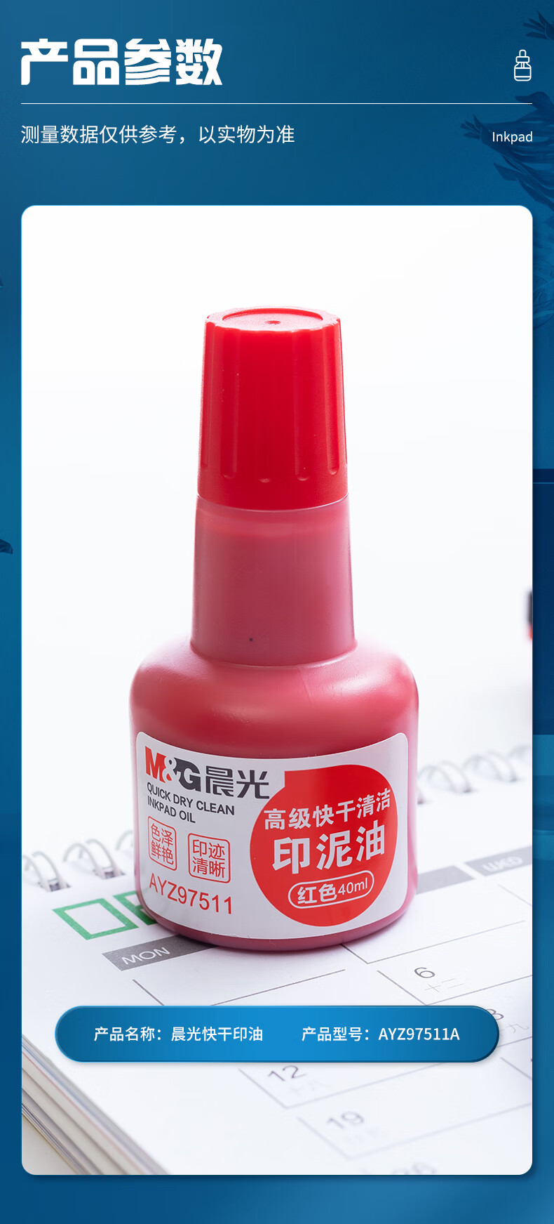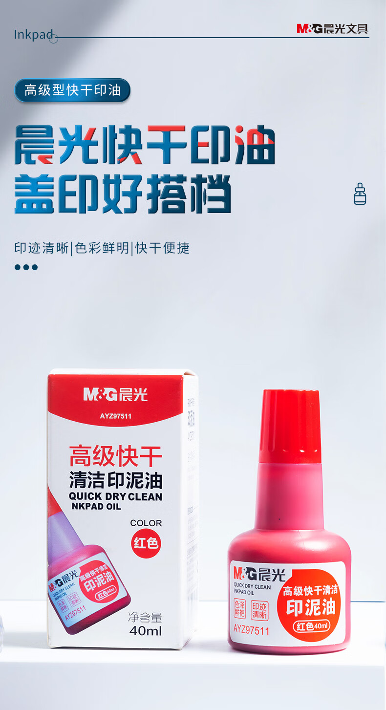 商品名稱:晨光AYZ97511 印油 40ml財務(wù)印泥快干印章清潔印油 紅色 單個裝