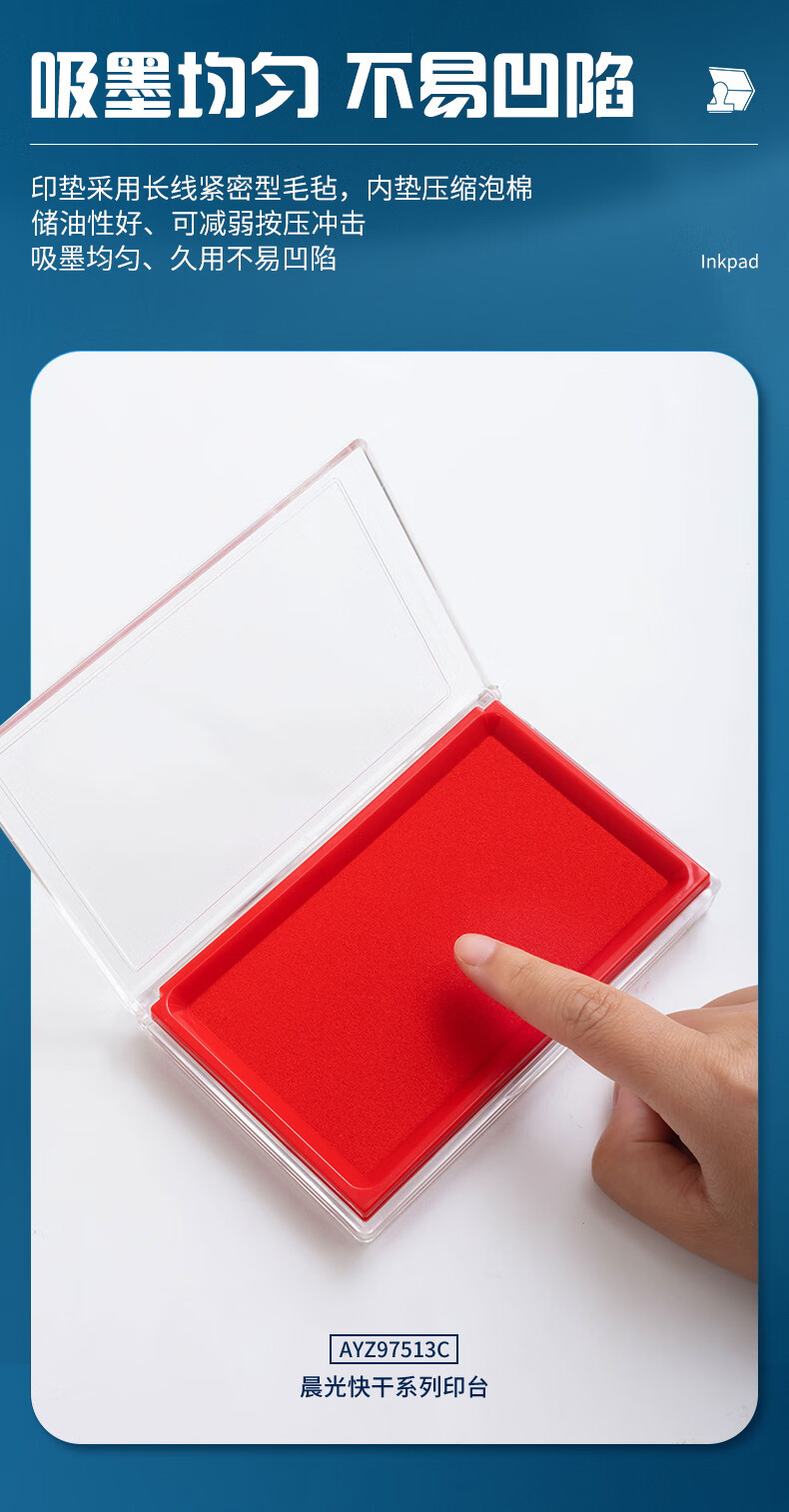 商品名稱:晨光AYZ97513 快干印臺(tái) 138*88mm透明外殼方形快干印臺(tái)印泥 紅色單個(gè)裝