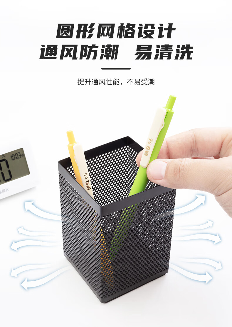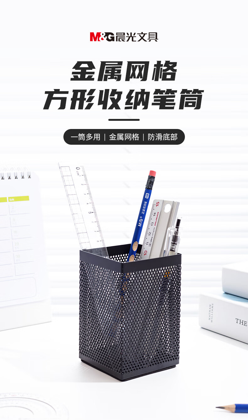 商品名稱:晨光金屬時尚網(wǎng)格方形筆筒 桌面收納盒 黑色 單個裝ABT98401