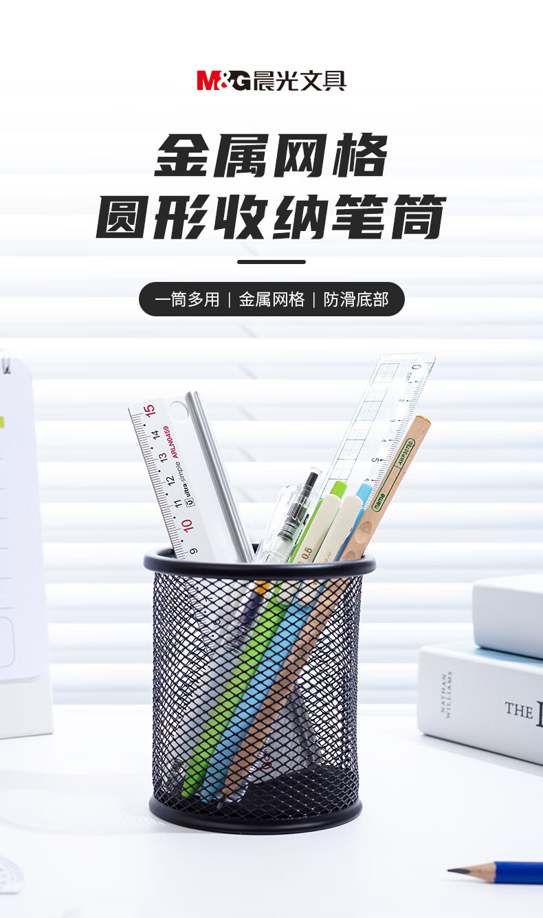 商品名稱:晨光金屬圓形網(wǎng)格筆筒 通用桌面收納盒 黑色單個(gè)裝ABT98404