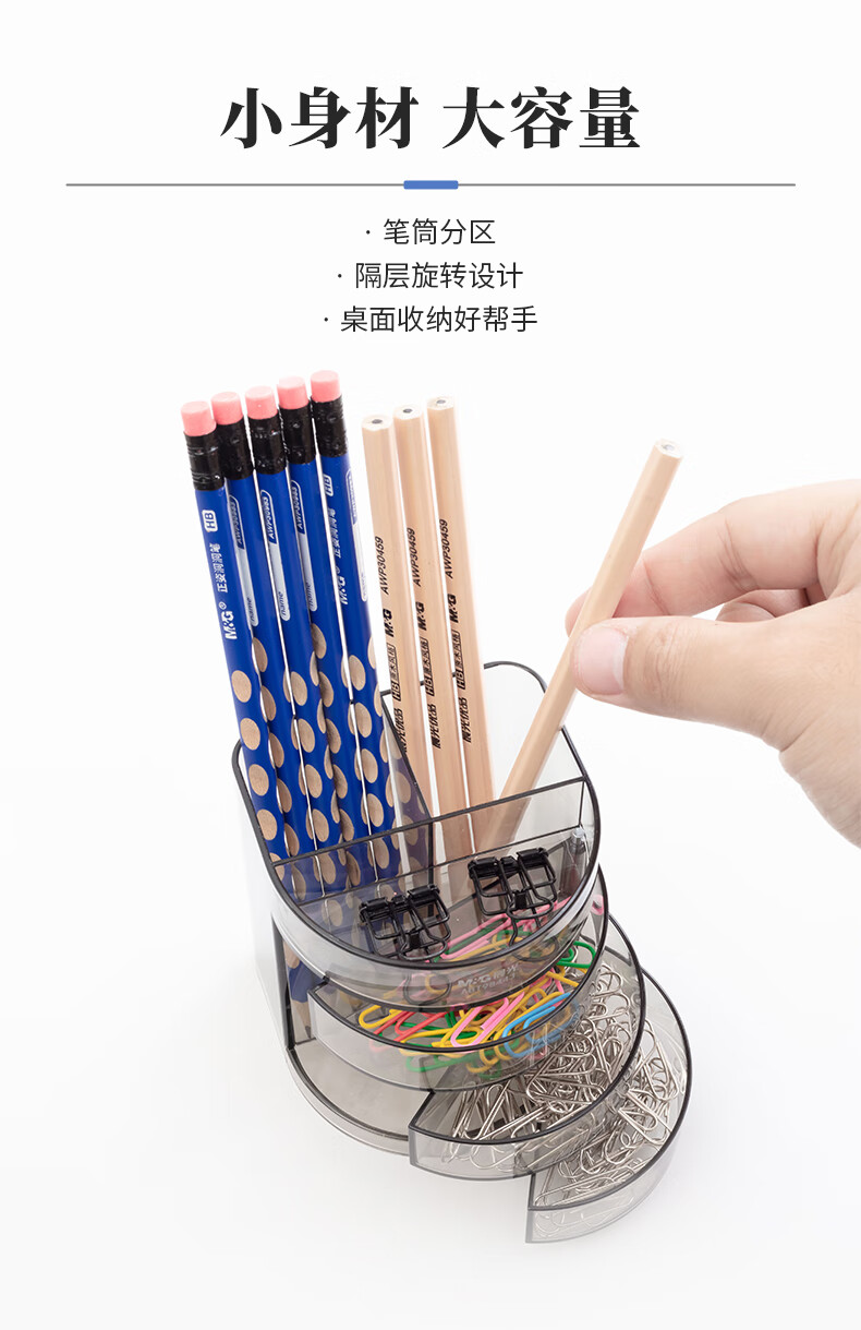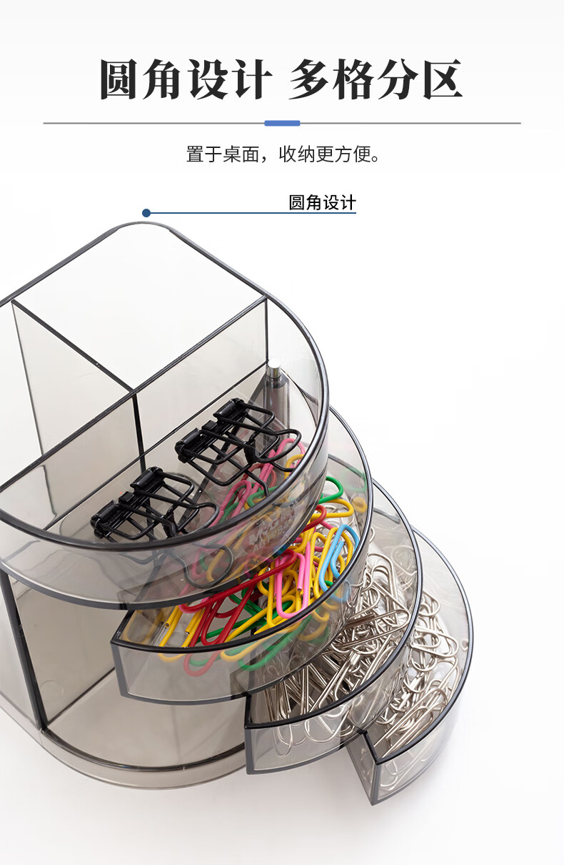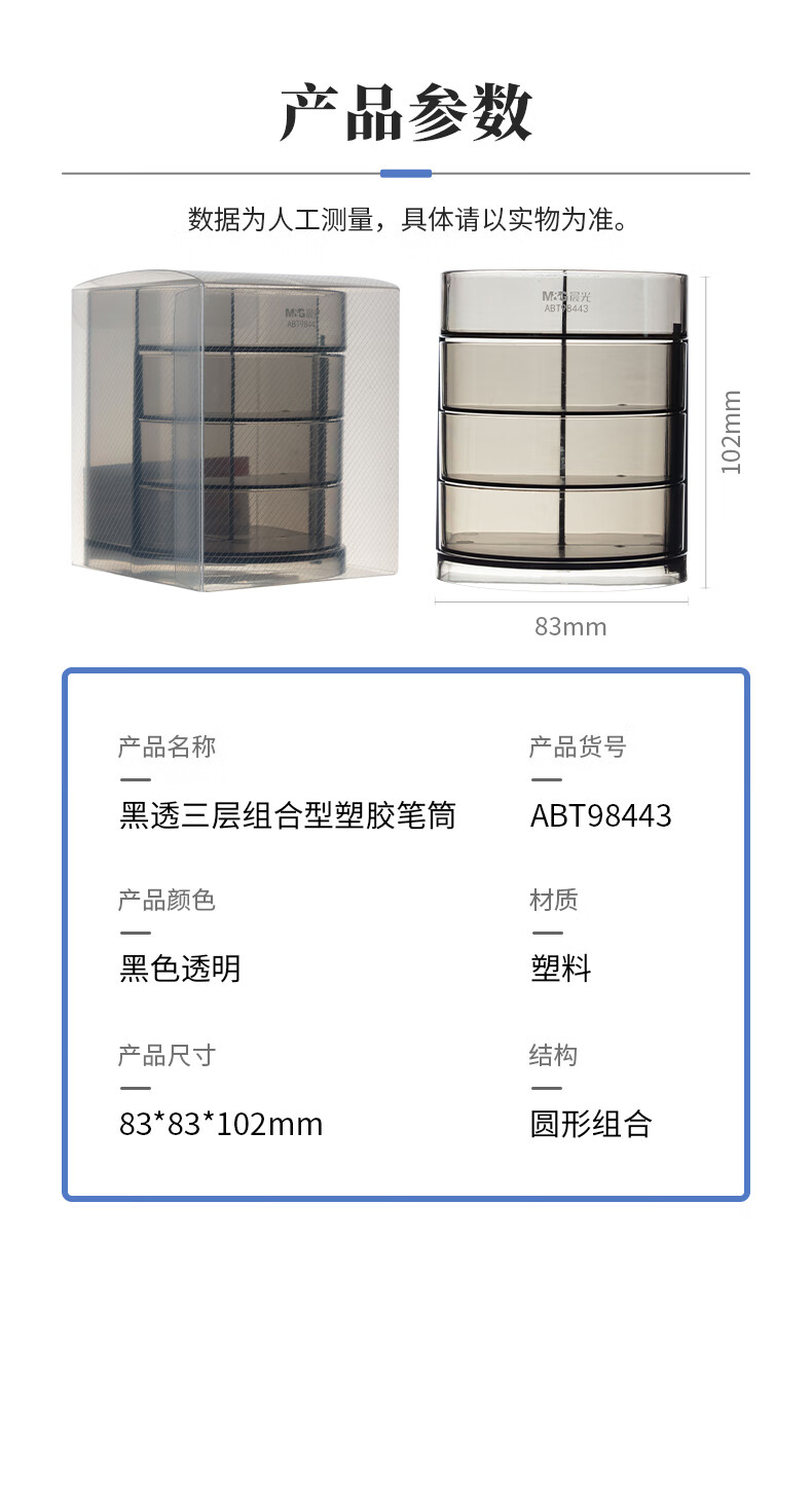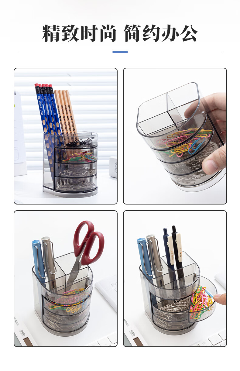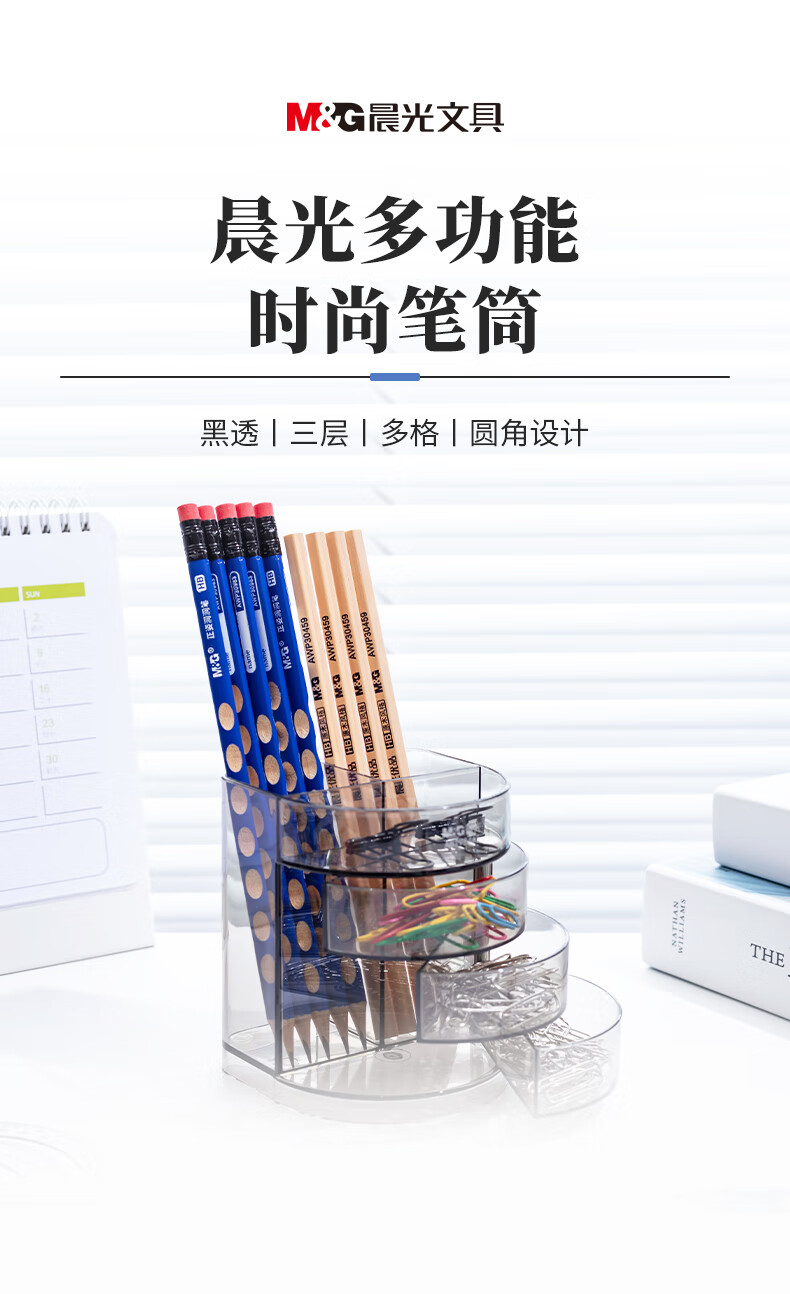 商品名稱:晨光透明三層時尚筆筒 多功能桌面收納盒 黑色 單個裝ABT98443