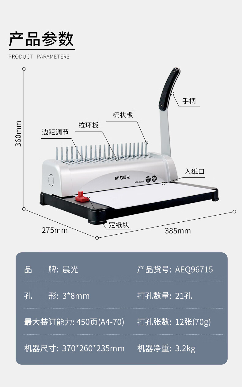 商品名稱:晨光膠圈裝訂機(jī) 21孔梳式夾條打孔機(jī)財(cái)務(wù)憑證機(jī) 單臺(tái)裝AEQ96715