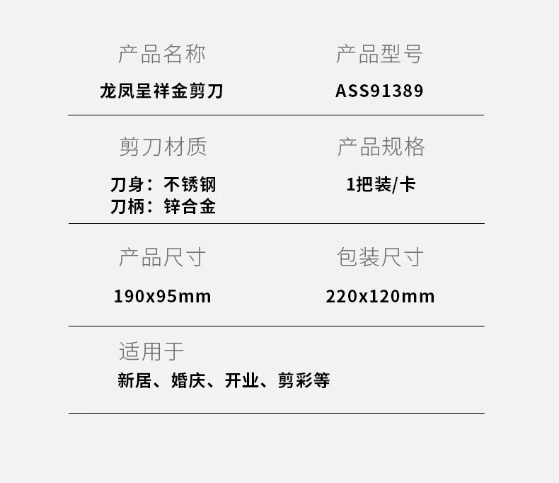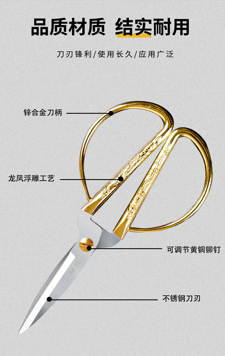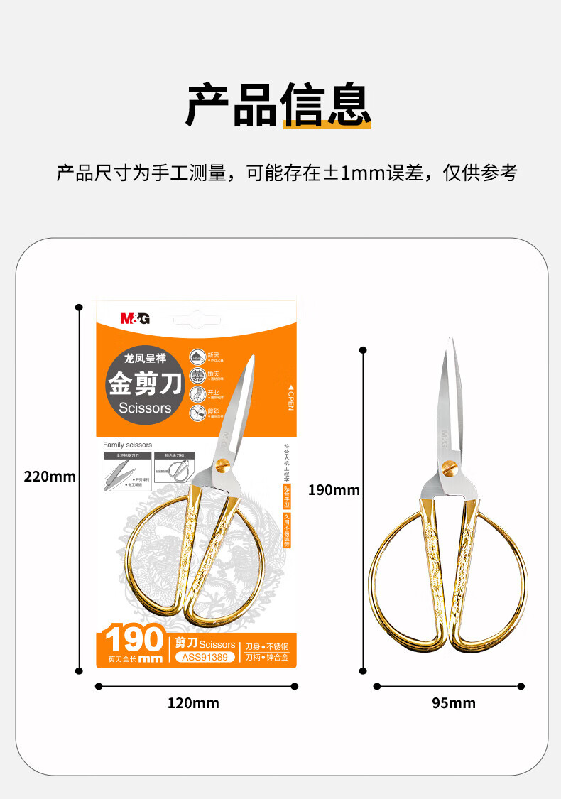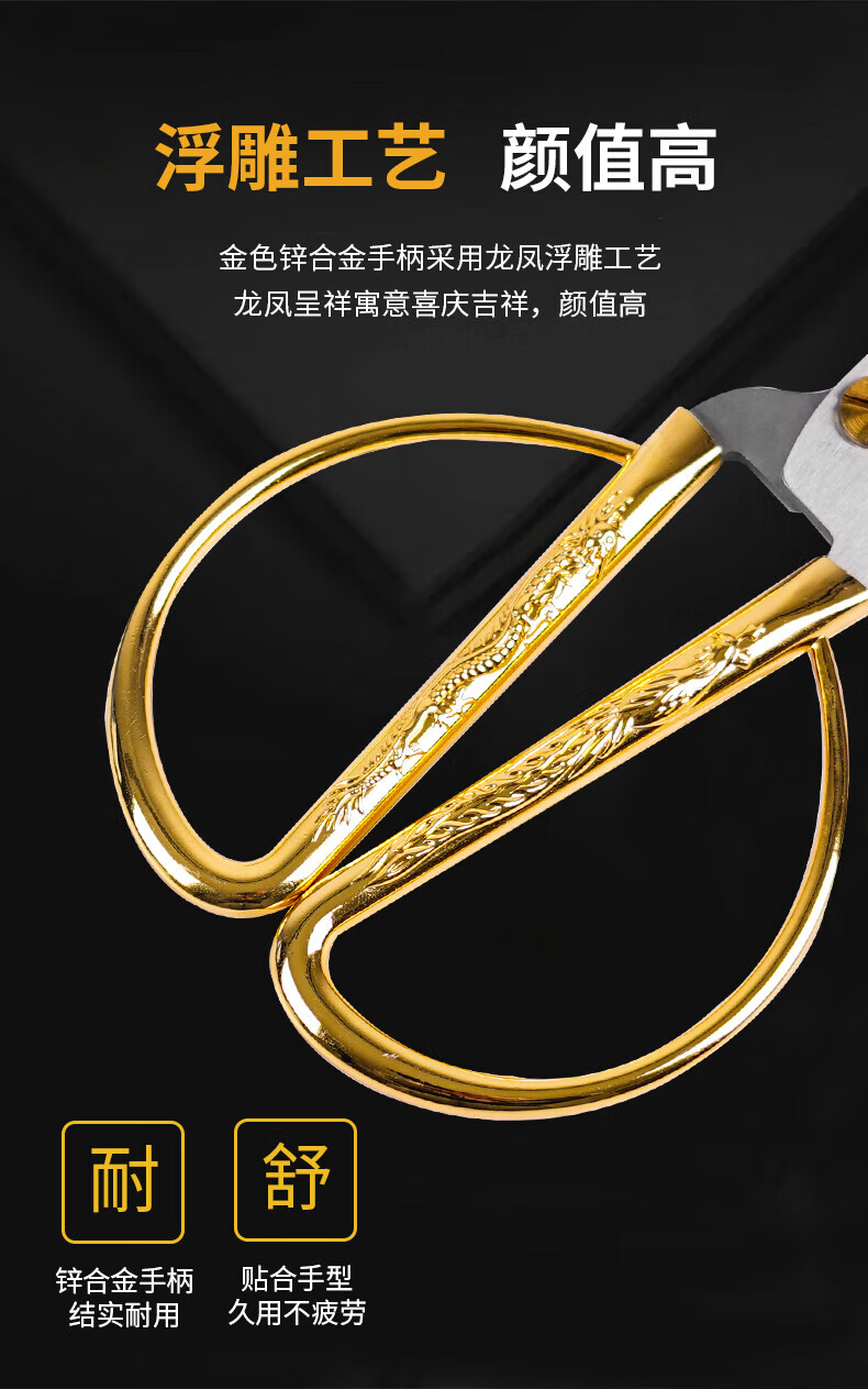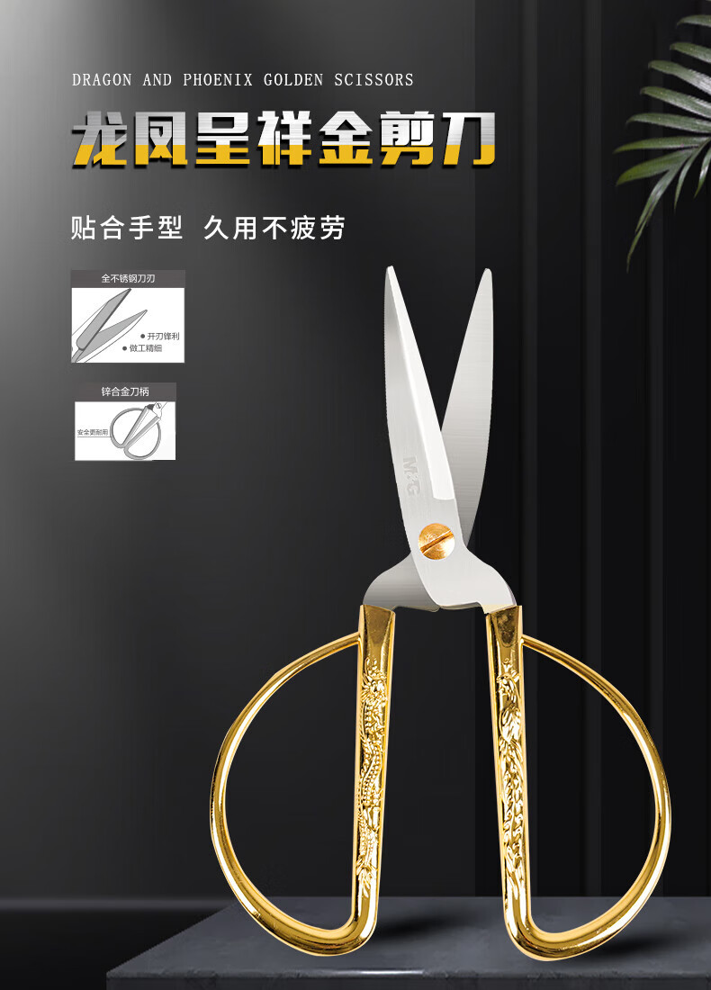 商品名稱:晨光190mm龍鳳呈祥剪刀 家用廚房生活剪彩金剪刀 單把裝ASS91389