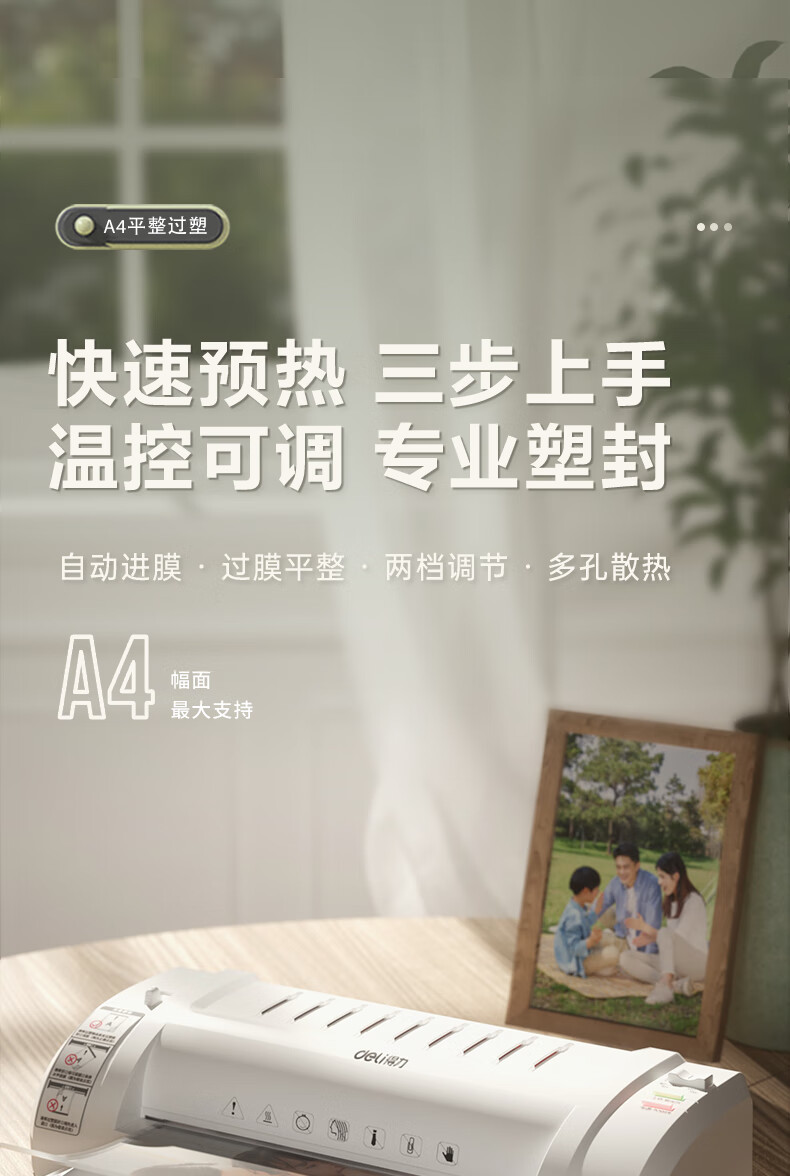 商品名稱:得力照片塑封機(jī)過(guò)塑機(jī) A4及以下相片過(guò)膠壓膜機(jī)封膜機(jī)覆膜機(jī) 3893