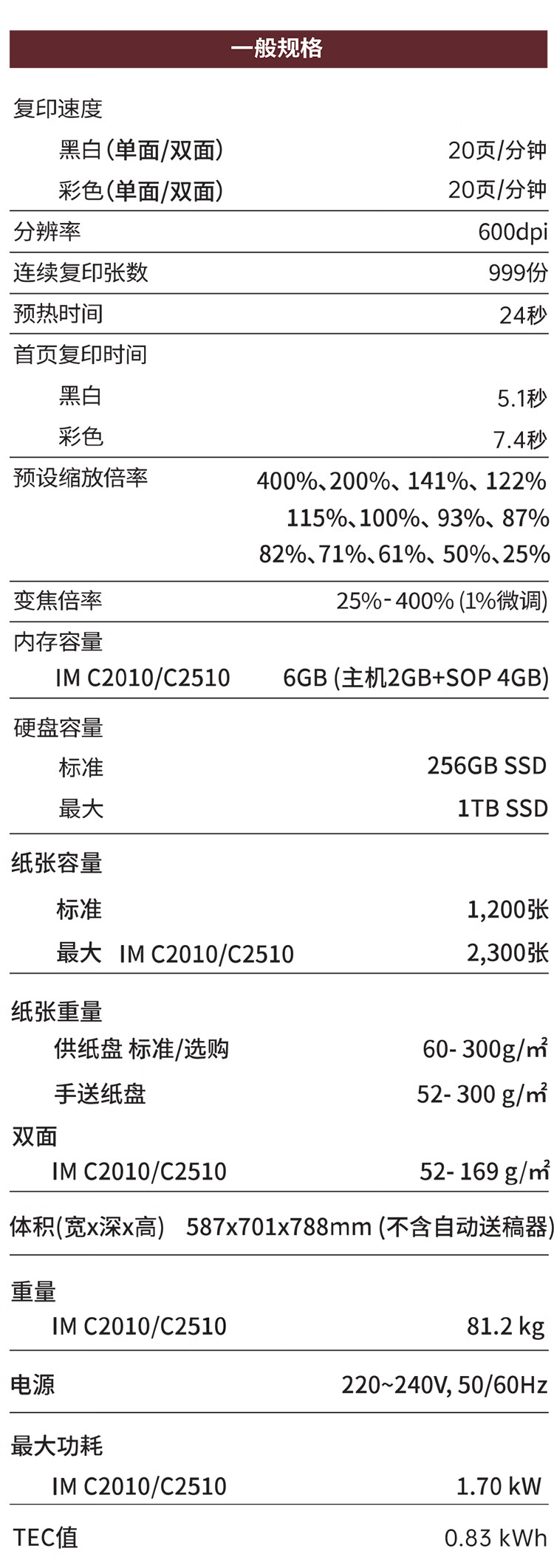 商品名稱:理光 IM C2010 A3彩色多功能數(shù)碼復(fù)合機 20頁/分鐘